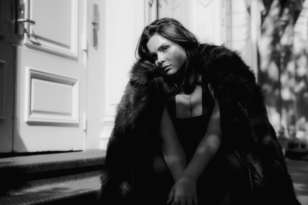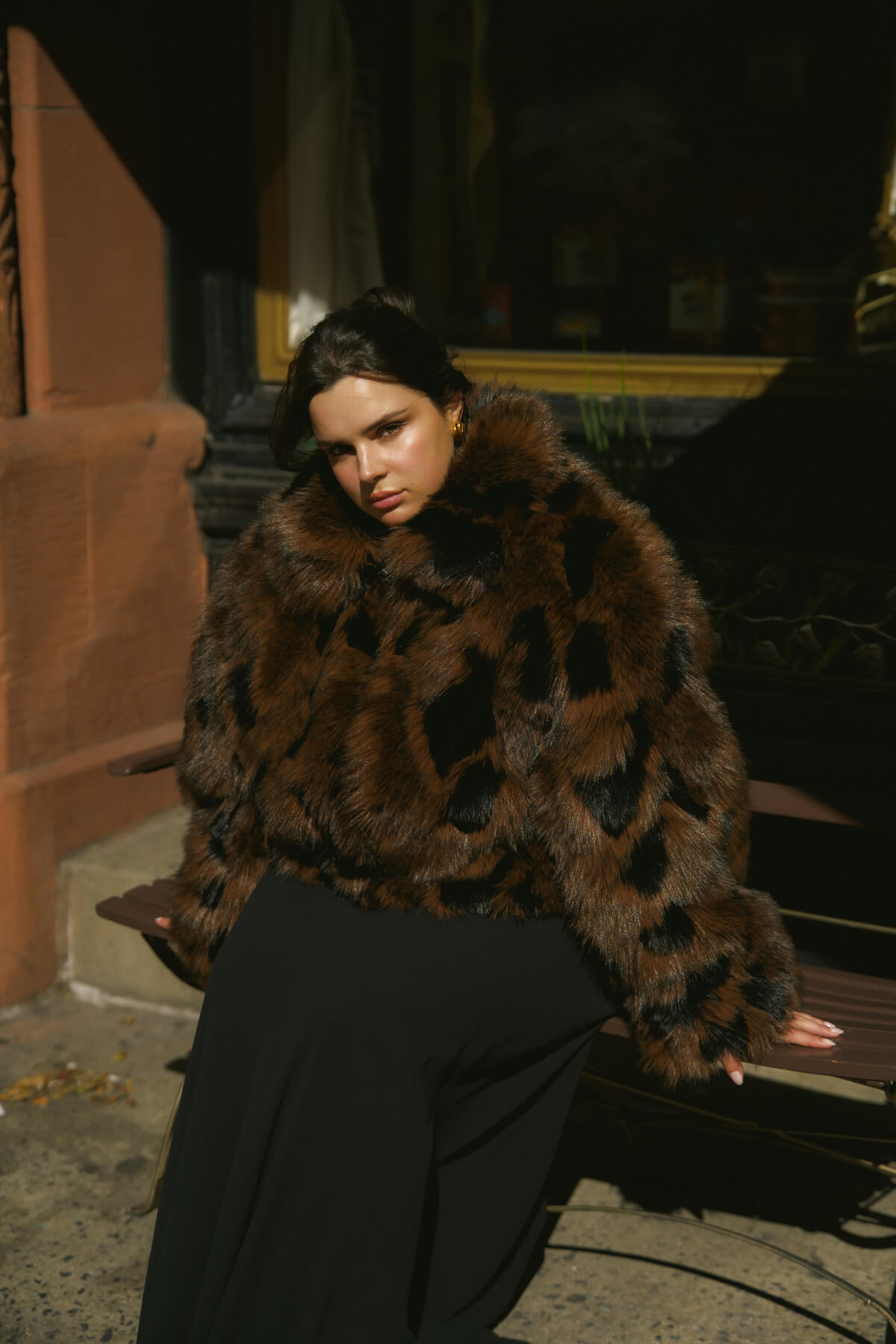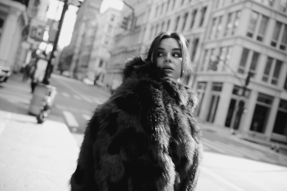 Fur jacket and dress by H&M STUDIO, heels LARROUDÉ