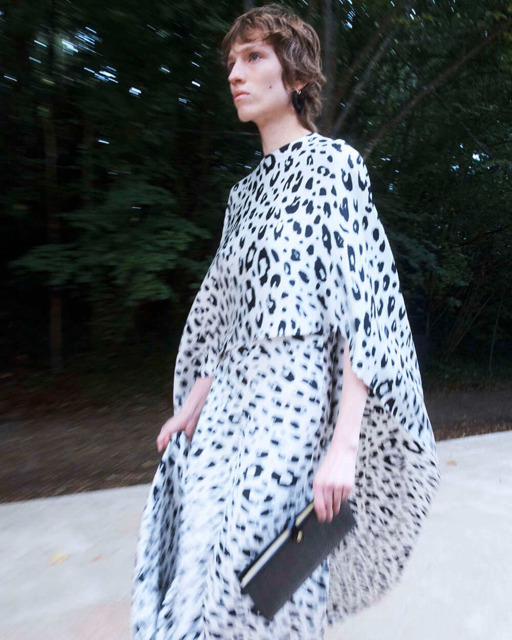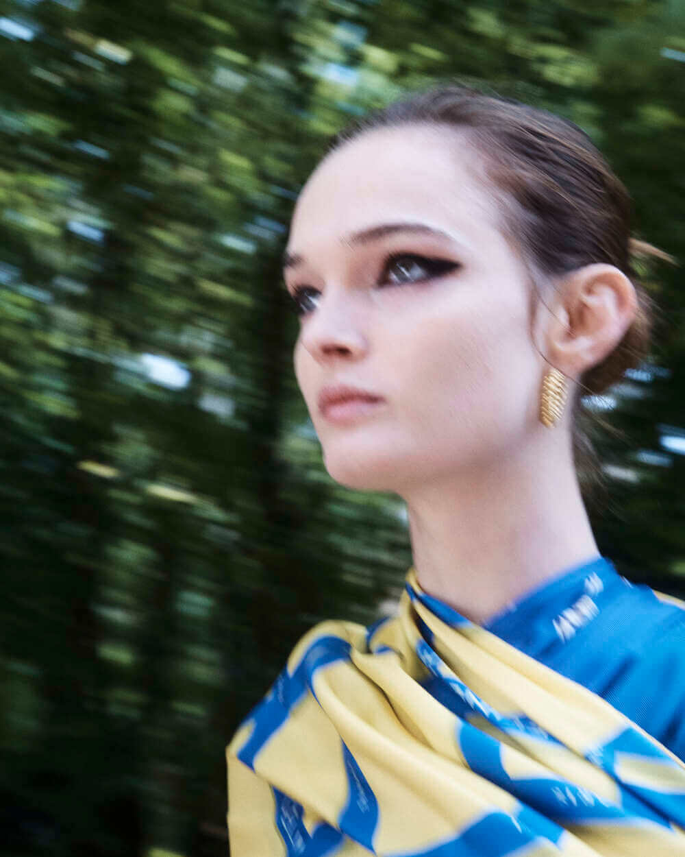 Models sported big bucket bags and motorcycle helmets as they strutted down the outdoor runway in sharp suits, structured babydoll dresses, and multicolored designs reminiscent of the 1960s. With its half-popped collars and worn-out haircuts, the collection was a scathing critique of Celine herself, someone polished yet carefree, rigid yet asymmetrical, uptight yet free-flowing. With deliberate touches that are evocative of the flaws and memories that come with living in a garment, his collection embodies the new weightlessness of remembering a summertime memory.