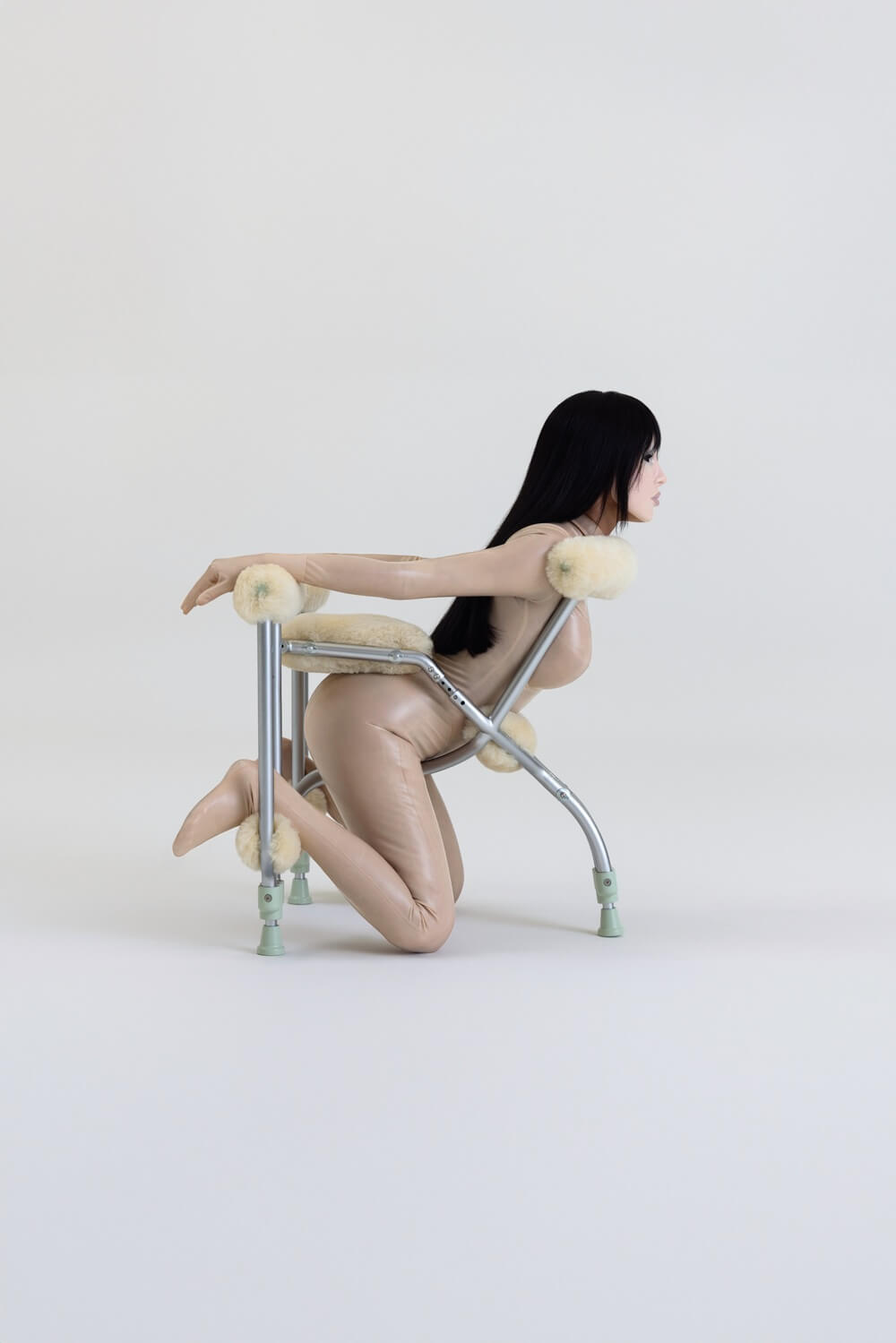 A strong aspect of BIO POP is how it collapses the distinction between humans and objects. Censori employs masked performers dressed to resemble her sometimes integrated into sculptural furniture hallenging viewers to reconsider how bodies are used, displayed, or even constrained by the objects that surround them. These living forms become both functional and symbolic elements: chairs, tables, and other domestic fixtures that simultaneously support and confine. This merging of flesh and furniture reflects a broader artistic inquiry into how environments shape human experience and vice versa.