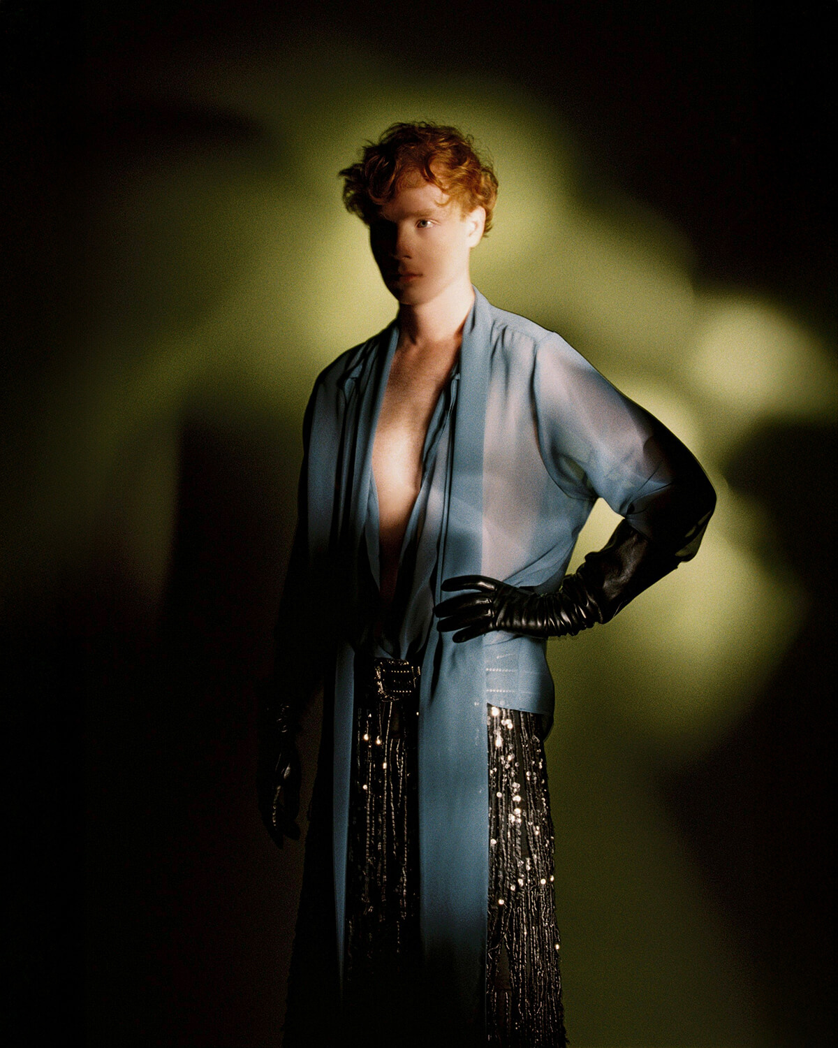 La clave está en reinterpretar, no en reproducir. No me interesaba hacer un vestuario histórico ni una recreación literal, sino tomar los códigos estéticos de esa época —los brillos, los volúmenes, la sensualidad— y llevarlos a un lenguaje actual. Trabajamos mucho la construcción de las prendas: cortes más limpios, proporciones contemporáneas, combinaciones de tejidos que aportan ligereza. La teatralidad está presente, pero con un punto de sofisticación minimalista que evita caer en el exceso. También hay un componente de actitud: el romanticismo de Colette no es pasivo, es desafiante. Eso nos permitió mantener el espíritu poético y al mismo tiempo darle un carácter actual, con prendas que no solo evocan el pasado sino que dialogan con la mujer contemporánea.