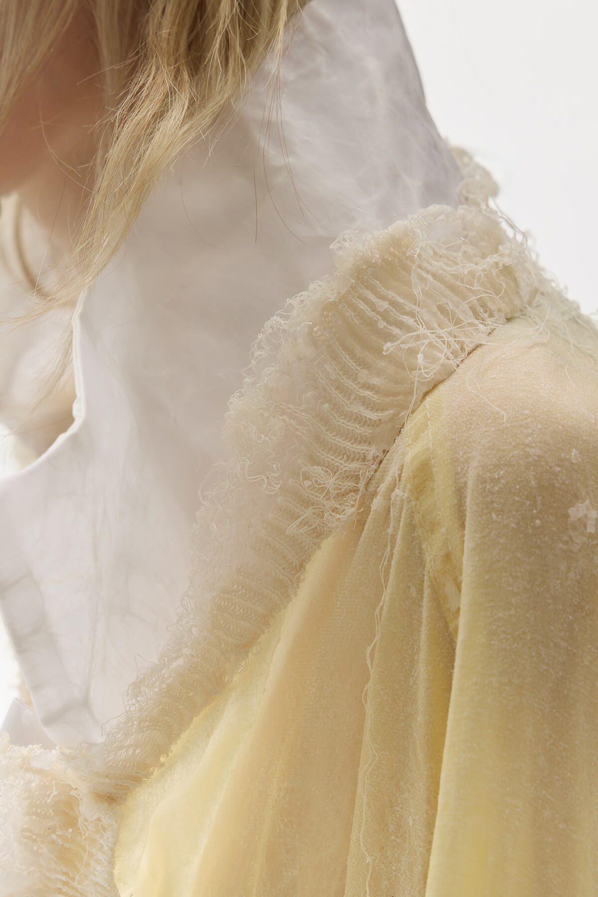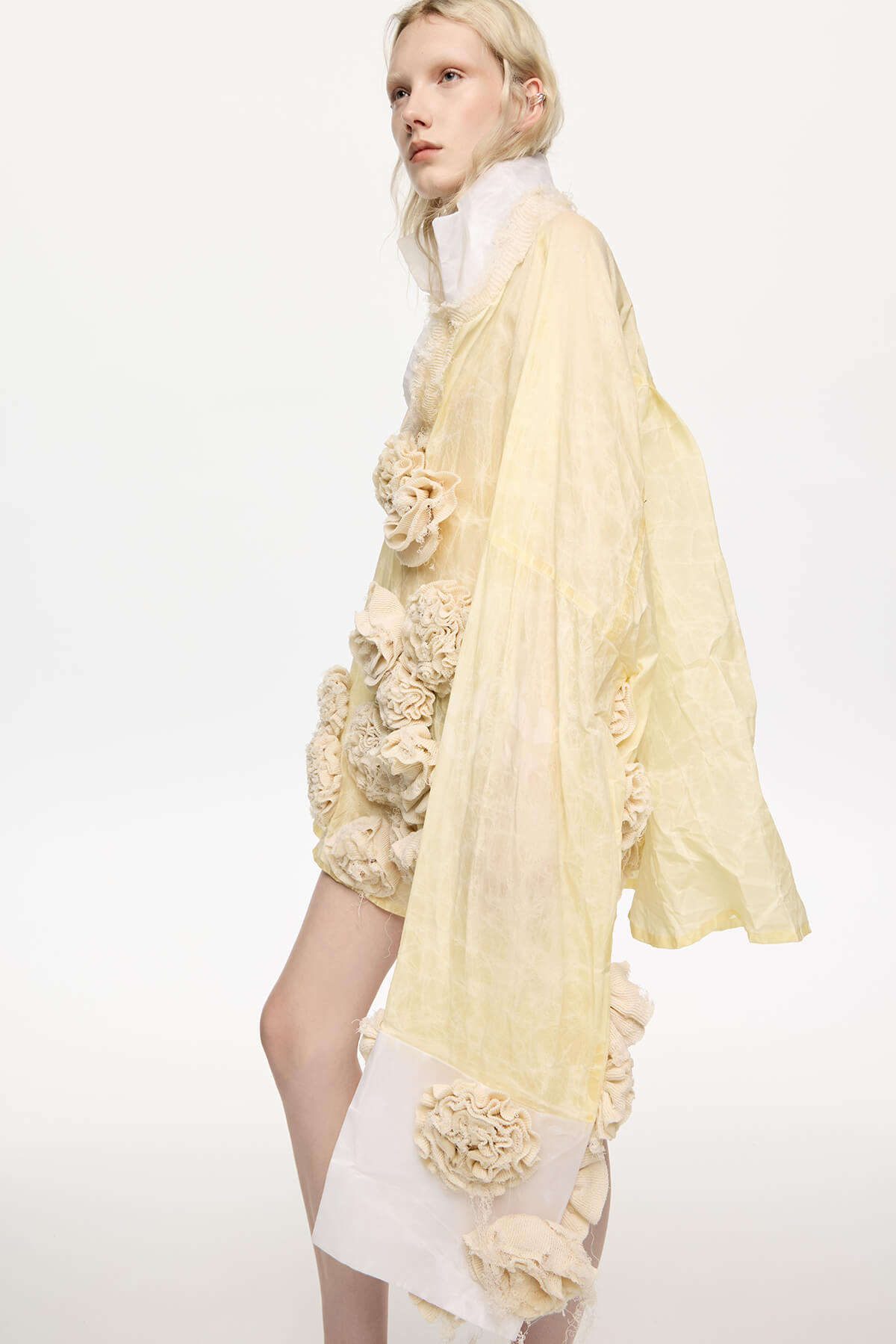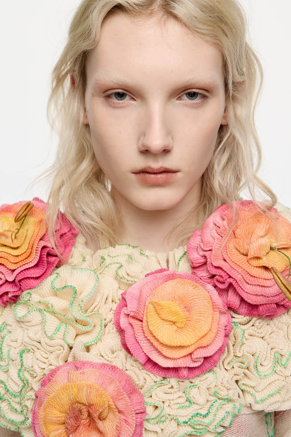 This capsule marks the culmination of a creative journey that began in 2023, a collaboration that has taken three collections to New York Fashion Week and amplified the international resonance of Palomo’s irreverent couture. Soon to be presented at the new Palomo Spain studio in Madrid, the project reflects the possibilities that emerge when education, craftsmanship and innovation converge around the same material, suggesting new ways to imagine how garments are made and remade.