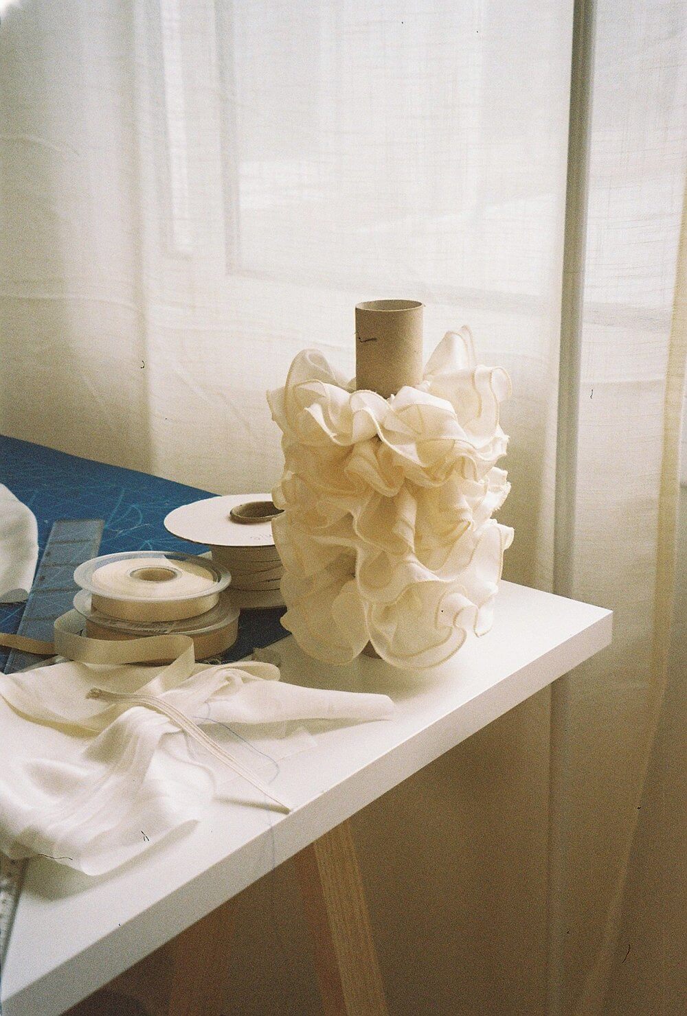Soy más de encontrar soluciones y dejar que la creatividad aparezca en el momento de coser. Muchas veces, del concepto inicial al resultado final hay una gran diferencia: surgen nuevas ideas, todo va cambiando de forma y el diseño se transforma. Disfruto muchísimo de ese proceso, de dejarme llevar y habitar ese momento creativo.