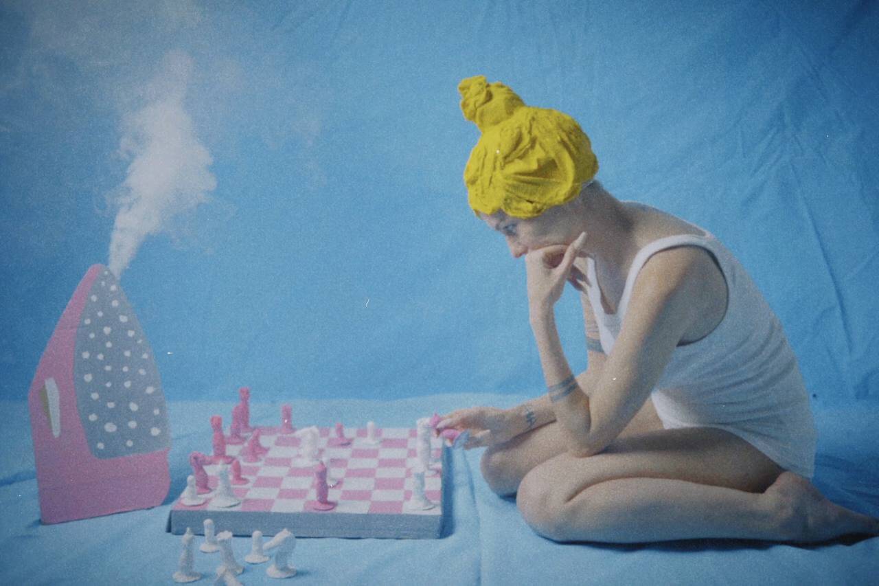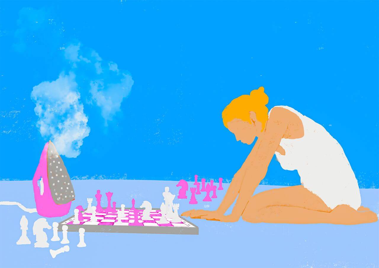 If I could step into one of my paintings for 24 hours, I would choose the one that started this whole series, made during Covid, when out of boredom and tenderness toward the world and myself, I played chess with an iron.