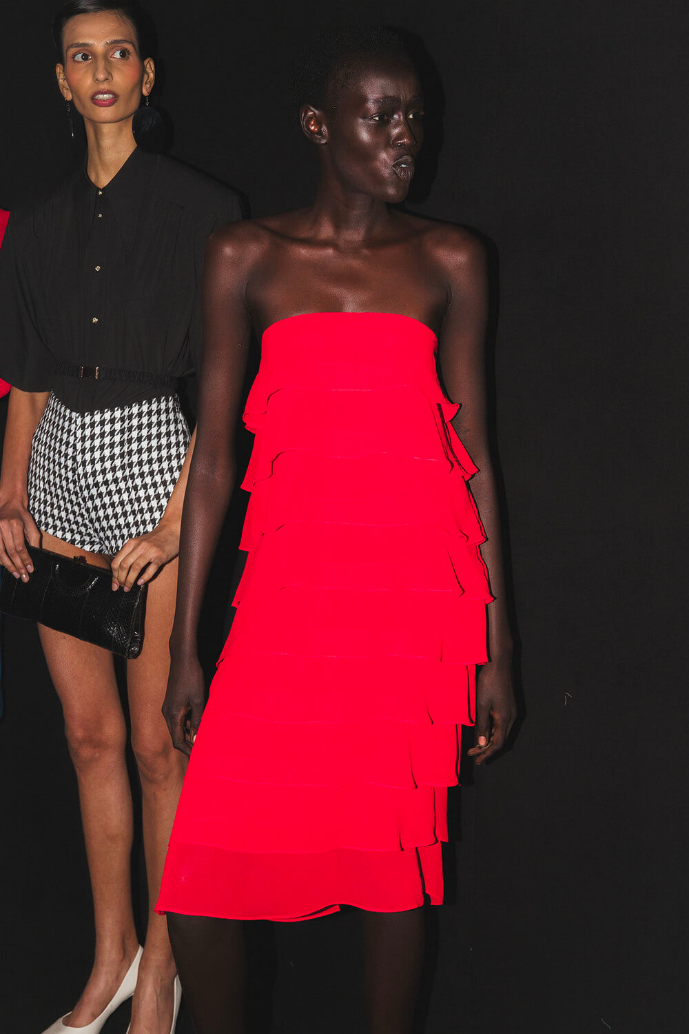 That spirit runs through every stitch. You can feel it — in the sharp shoulders that nod to 80s power dressing, in the fluid skirts that move like whispers, and in the way masculine tailoring and feminine ease merge without conflict. It’s giving evolution, not nostalgia.