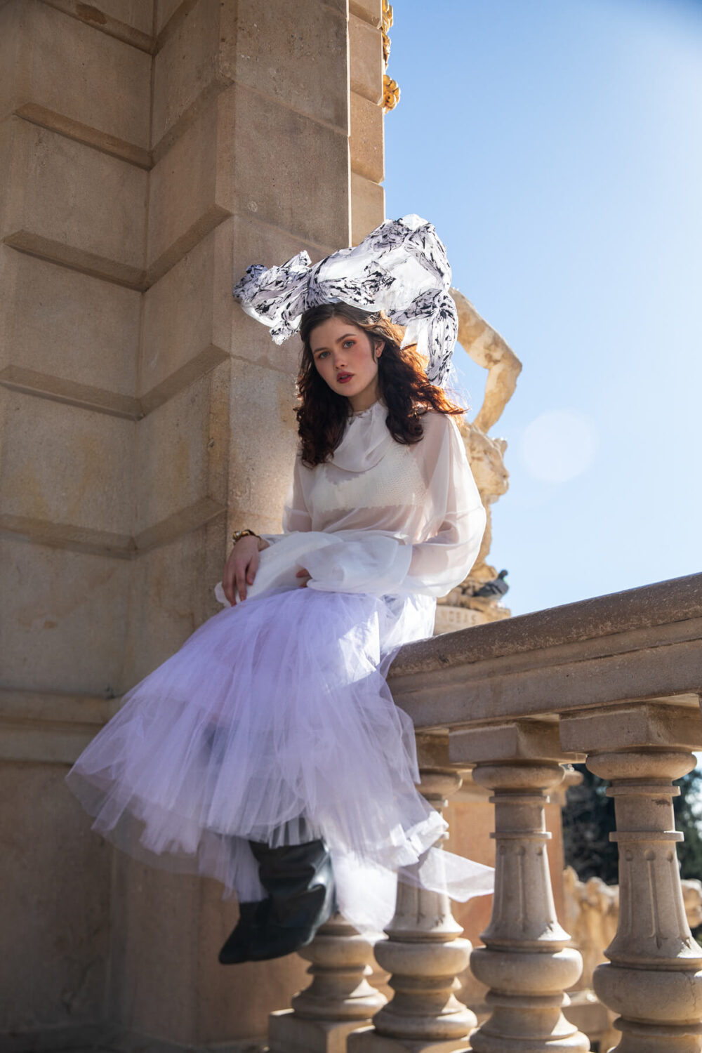 Skirt INGRID MAKO, top and headpiece KURT ISTORE, black corse W!LDCH!LD, trousers ALSEDÀ, bag PAPI Y MAMI, bracelet FERNANDO RODRIGUEZ