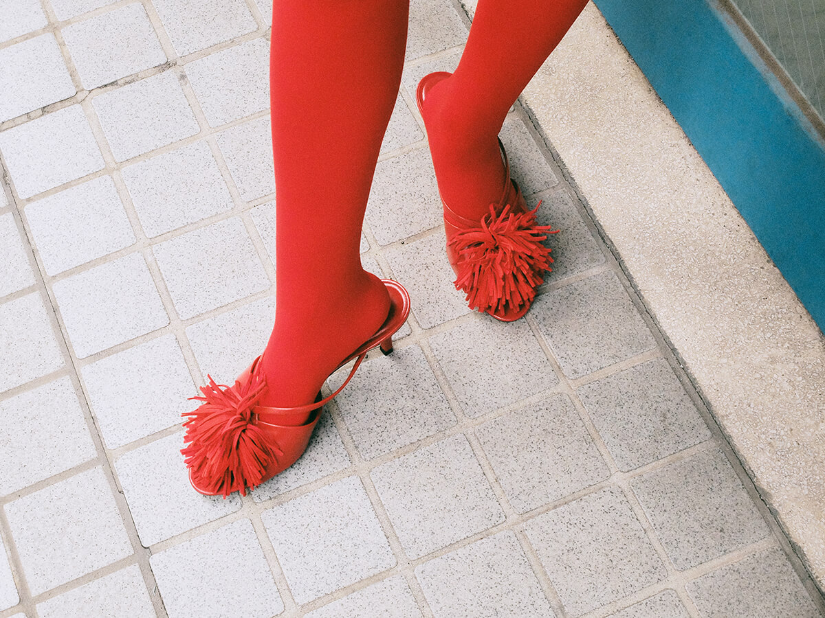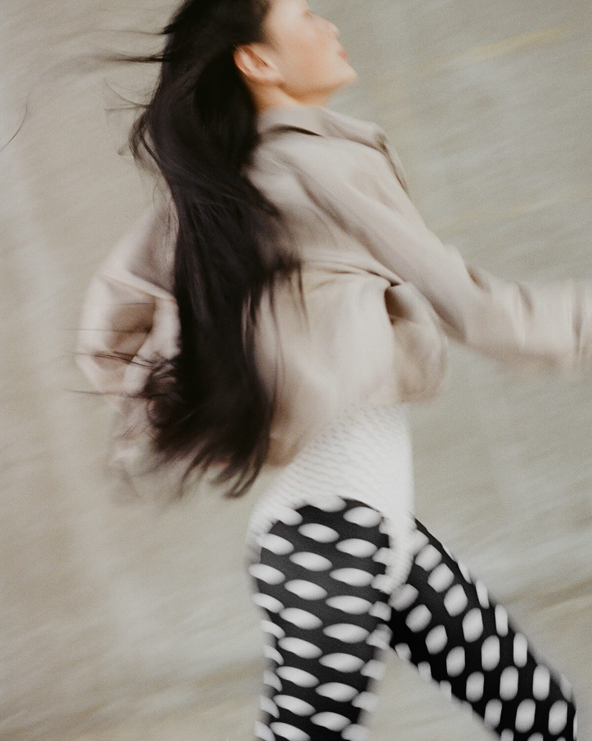 jacket BOTTEGA VENETA, bodysuit VINTAGE ARCHIVE, tights EMILIO CAVALLINI, shoes PRADA