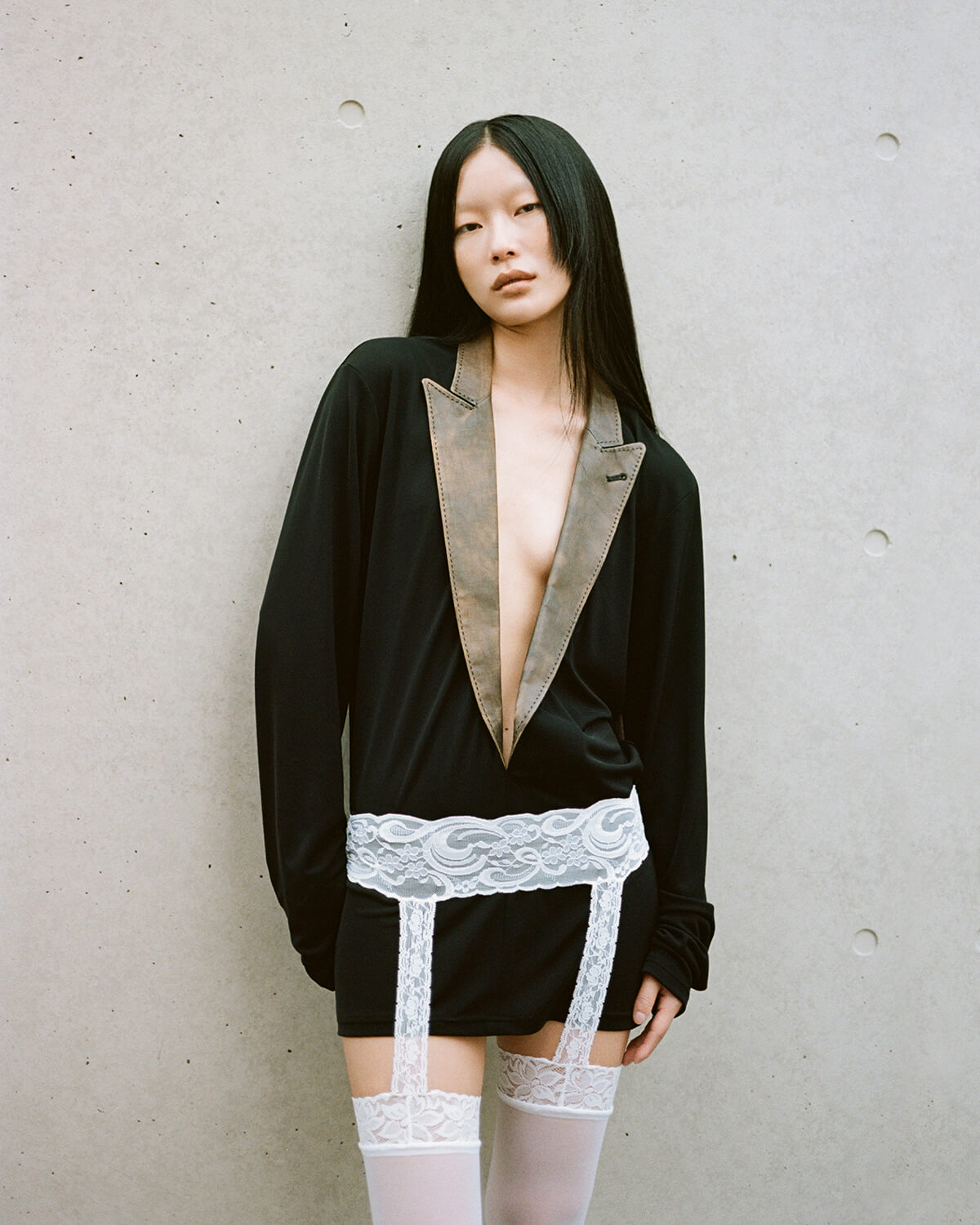dress JEAN PAUL GAULTIER, garter belt WOLFORD, shoes BOTTEGA VENETA