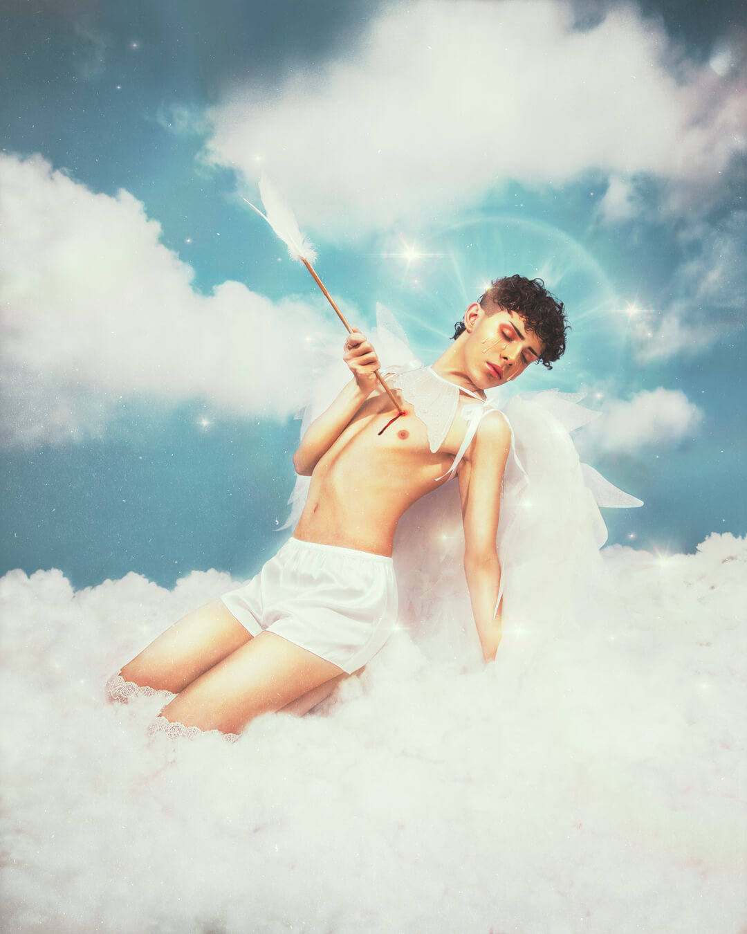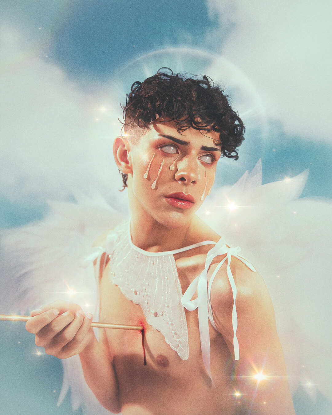 “CUPID: Of Golden Arrows and Tears” is a photographic project photographed by Paula Sixto that takes the figure of Cupid as its starting point, revisiting it from a more intimate perspective. Instead of presenting him as the one responsible for love in others, this work positions him as a body pierced by his own arrow, shifting the gaze inward and making him vulnerable. Through this wound, the project speaks of self-love as an uncomfortable and less-than-idealized process. Not from an epic or romantic standpoint, but from fragility, weariness, and the need to stay. The wound appears not as punishment, but as a beginning: a point from which to start listening to oneself and inhabiting oneself.