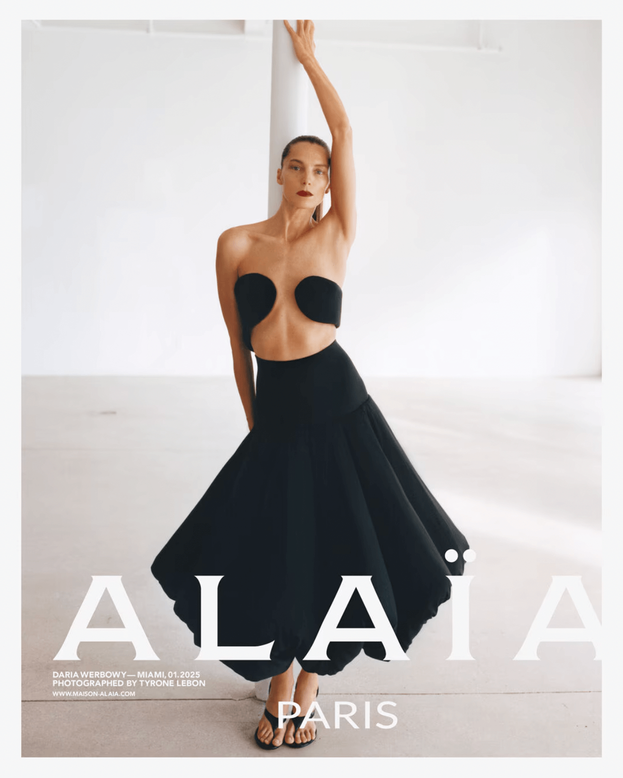 Few faces capture the essence of early 2000s fashion like Daria Werbowy. In Alaïa’s new campaign, she returns to the lens with the same stillness and sensuality that made her an icon.