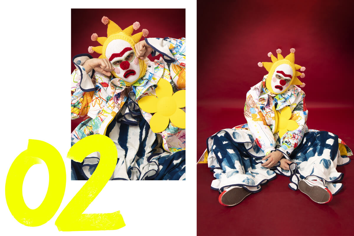 In this photographic editorial created by Ángela Ibáñez and the fashion designer Mel Melero, they delve into the fascinating world of clowns and their identity search. «¿Donde estas?» reveals how these artists hide behind their colorful masks to conceal who they truly are. What do these characters feel and think when they are not performing? What stories and truths are hidden beneath the makeup and laughter?