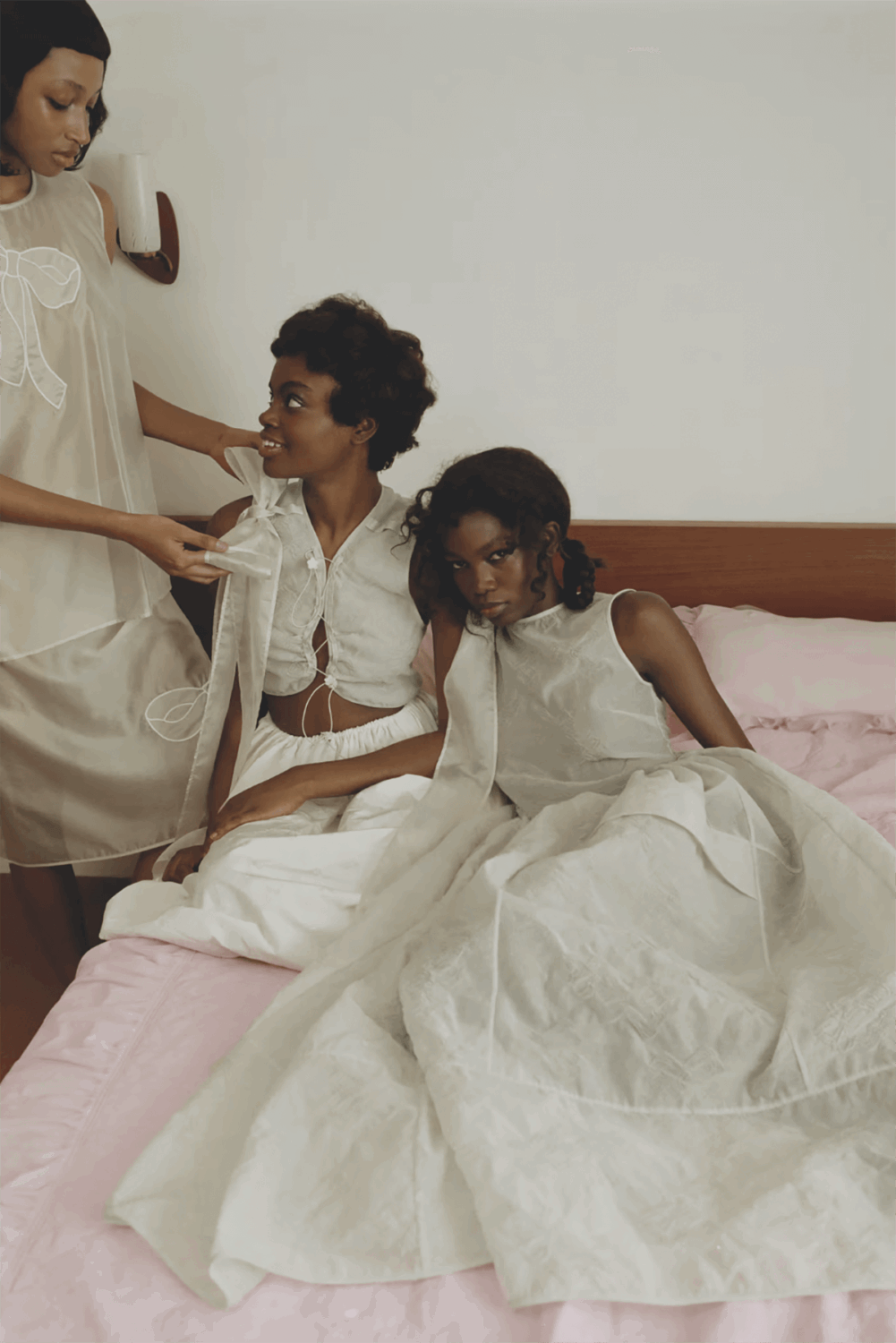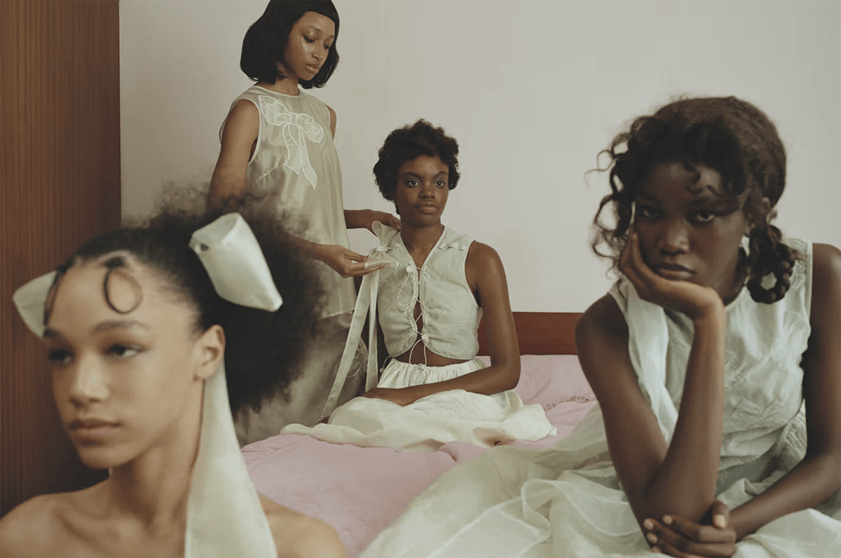 Rooted in ideas of ritual, gesture and quiet anticipation, Cecilie Bahnsen’s latest campaign approaches dressing as an intimate, formative act rather than a finished statement. Inspired by childhood memories of dressing up without a clear destination, the visuals explore those in-between moments where clothing becomes play, connection and shared experience. Photographed by Nadine Ijewere and styled by Nathan Klein, the Pre-Fall 2026 campaign unfolds in a cinematic register that privileges softness, imperfection and emotional presence over completion.