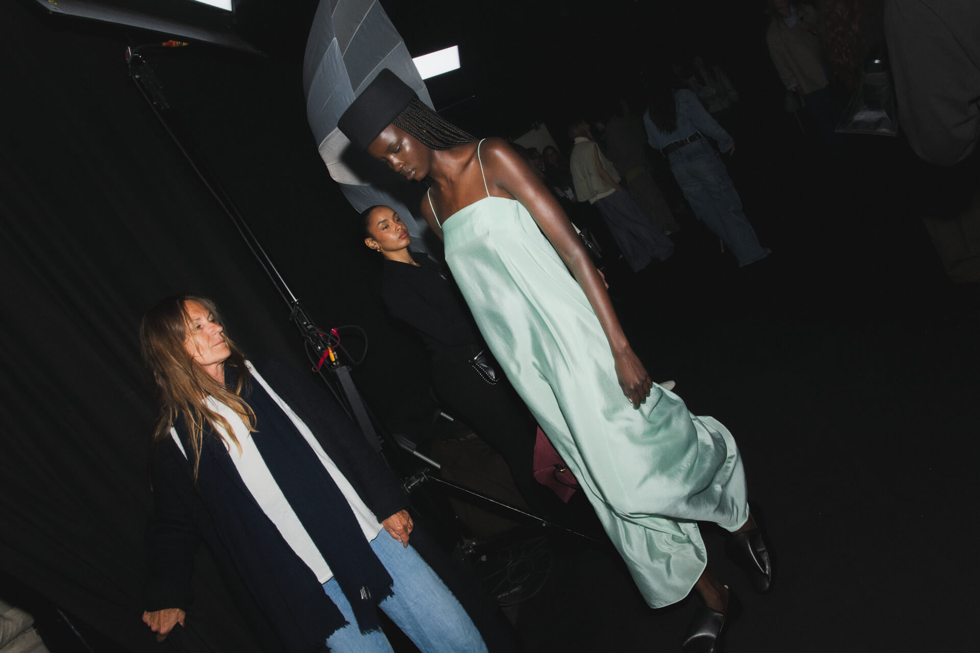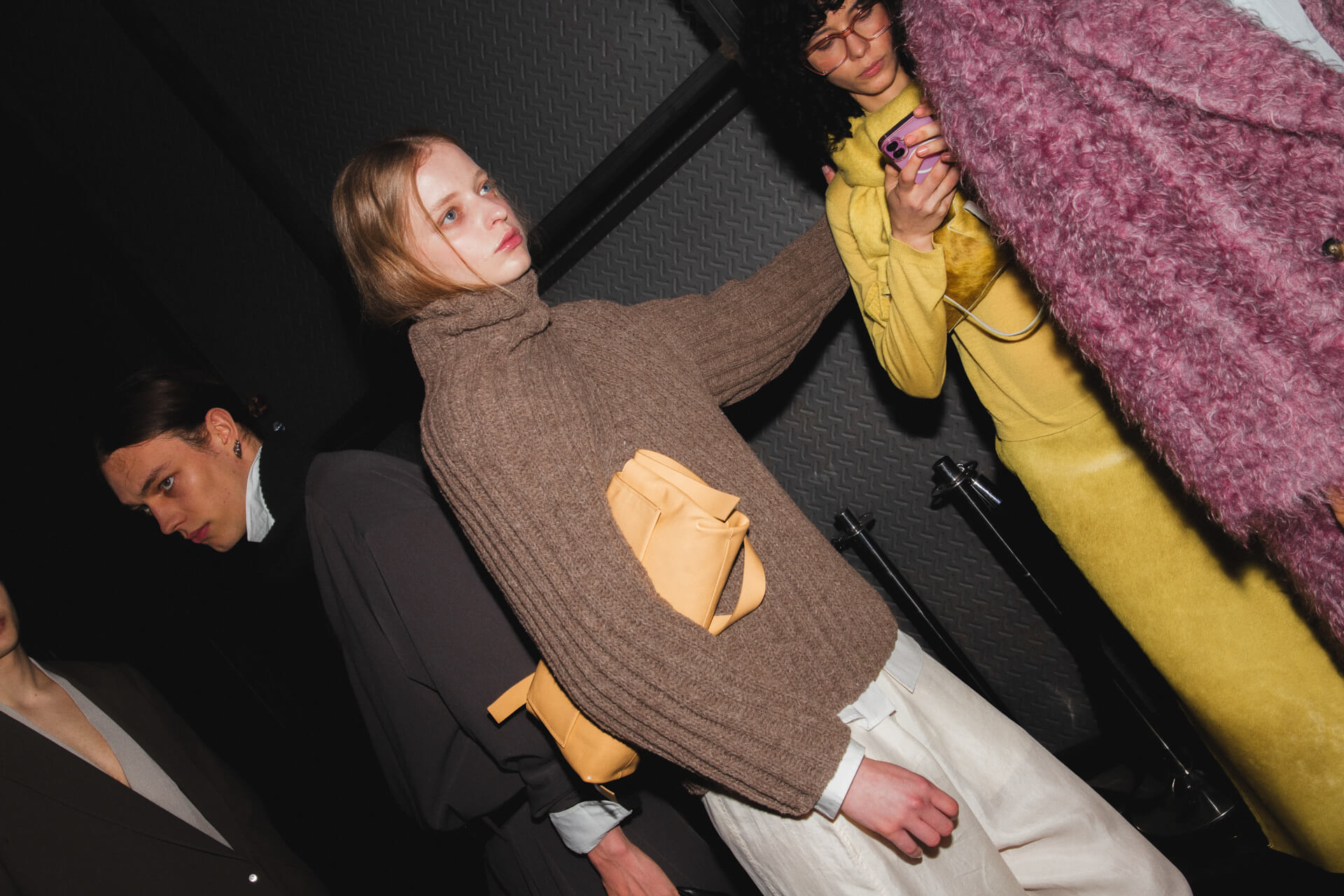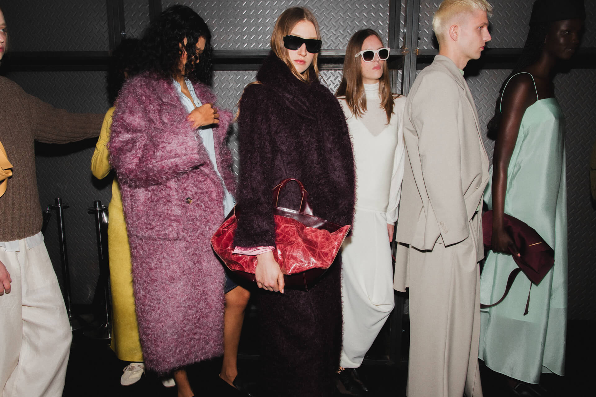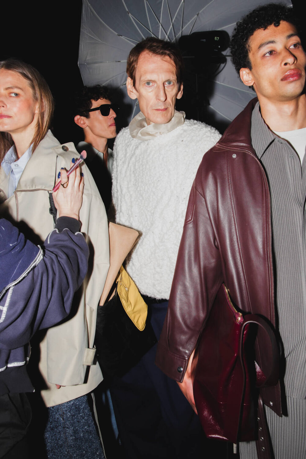 «El Número” begins with tailoring as its base. Blazers feature pronounced shoulders and displaced armholes, reshaped through invisible elastic elements, while wires and rods along the edges introduce tension and alter the silhouette. This logic extends into hybrid pieces: shirts that function as knitwear, ballerinas that act as sneakers and skirts conceived as trousers, opening each garment to multiple readings.