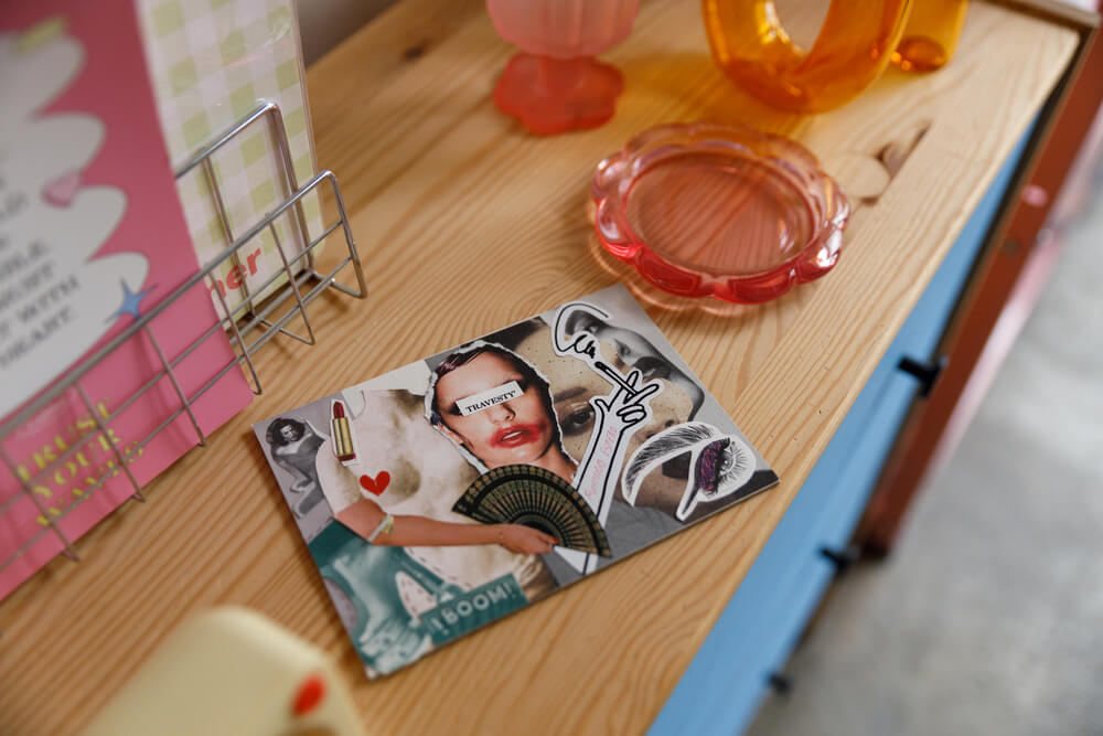 The result? A dreamy, hands-on workshop called Fashion Postcards, where students transformed our magazines into intimate collage universes. No rules. Just scissors, glue, instinct and a lot of personality.