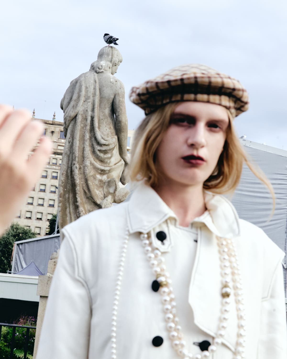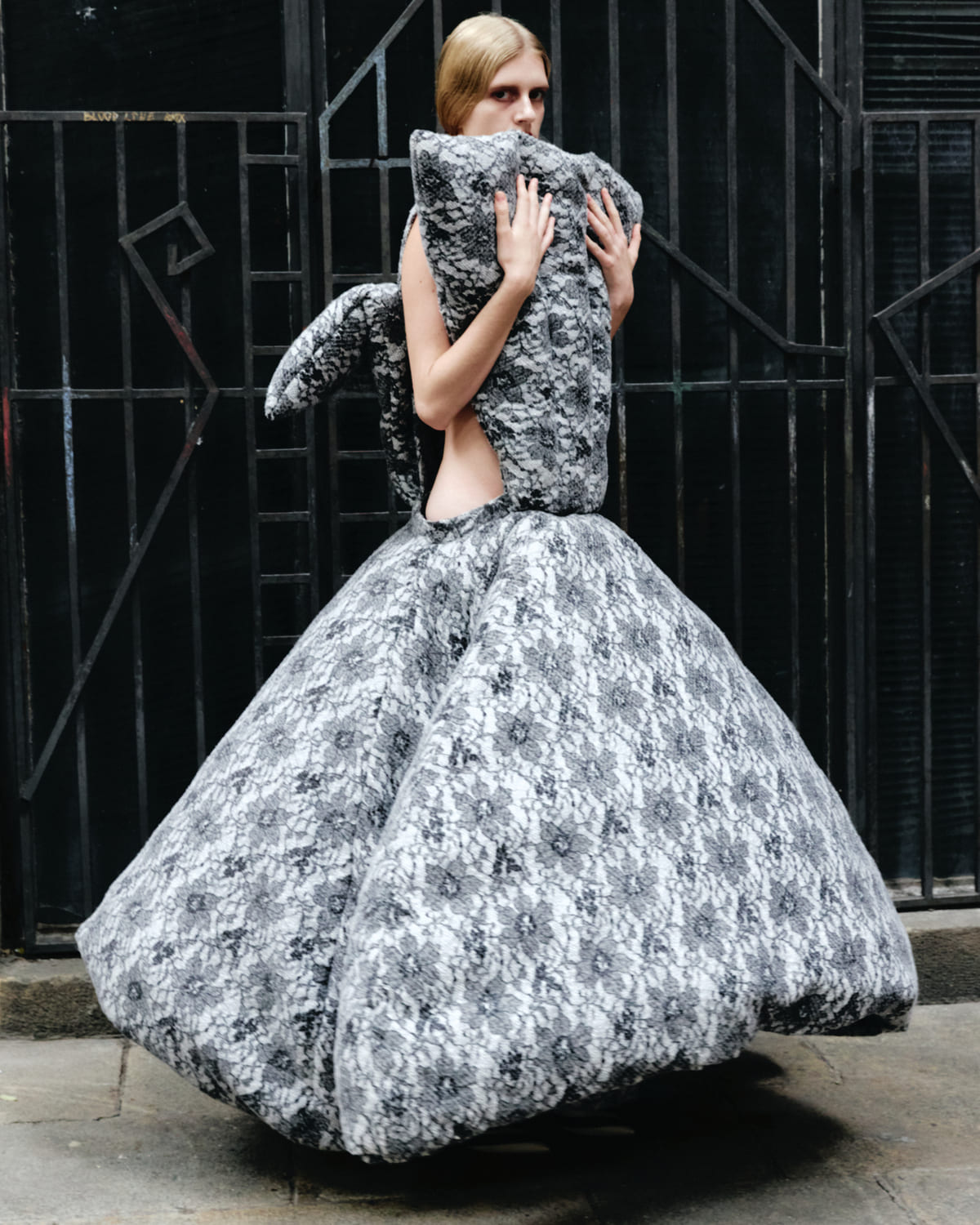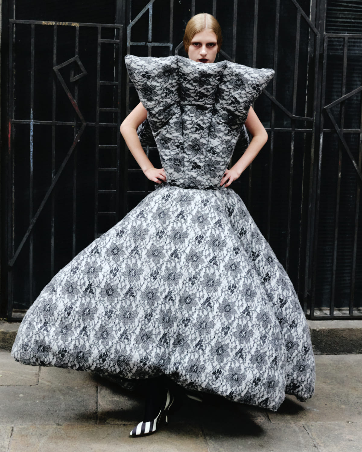 Feathers top POL GÓMEZ GONZÁLEZ, pants GUILLERMO JUSTICIA, tights HYD, shoes ACNE STUDIO