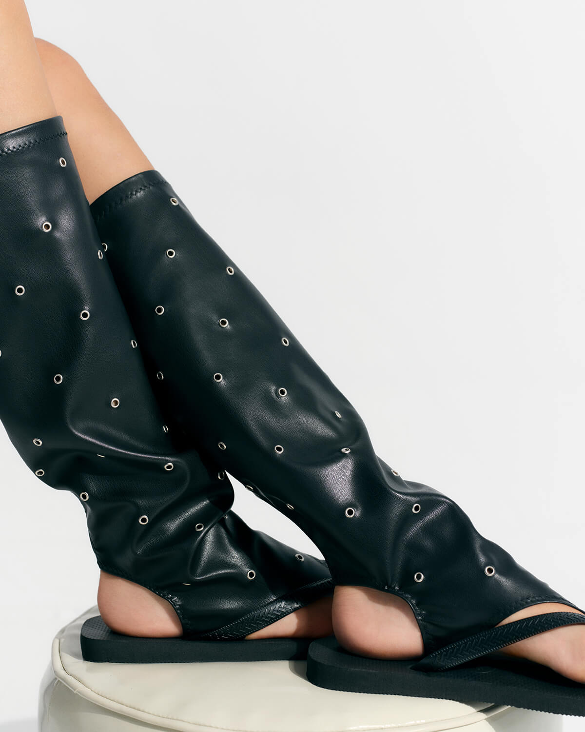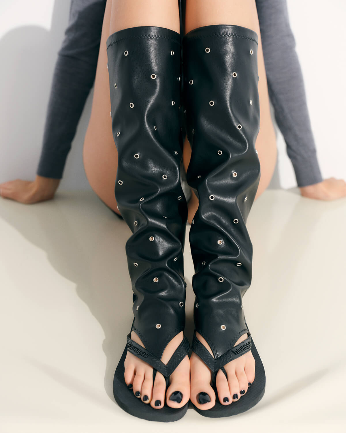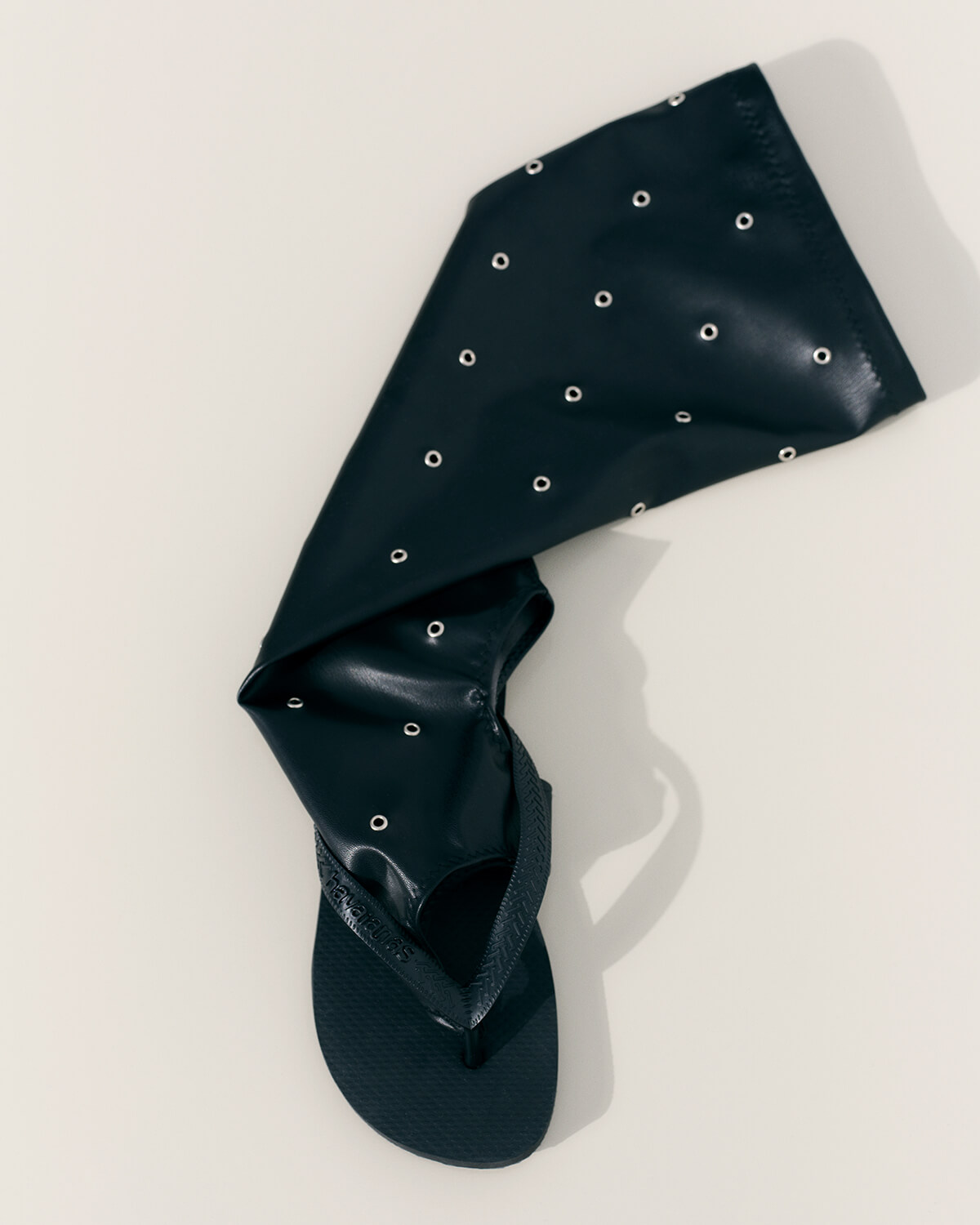 La colaboración entre Havaianas y Gimaguas regresa con una propuesta que lleva el modelo Top a un terreno plenamente fashion. La chancla incorpora ahora un calentador de piel artesanal que envuelve el pie con la estética característica de Gimaguas, cuyos ojales plateados redefinen la silueta y aportan un giro inesperado a un icono del verano.