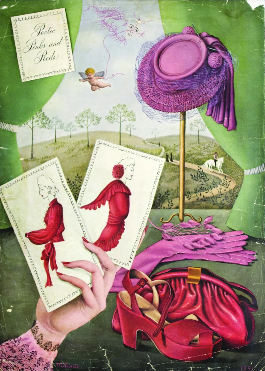 Her move to New York in the late 1930s opened a sustained dialogue with the fashion press. She collaborated as an illustrator with leading magazines such as Harper’s Bazaar and Vogue, translating her painterly universe into editorial imagery. In these works, fashion appears as an extension of her dreamlike imagery, reinforcing a vision in which clothing functions as another symbolic surface within her surreal imagination.