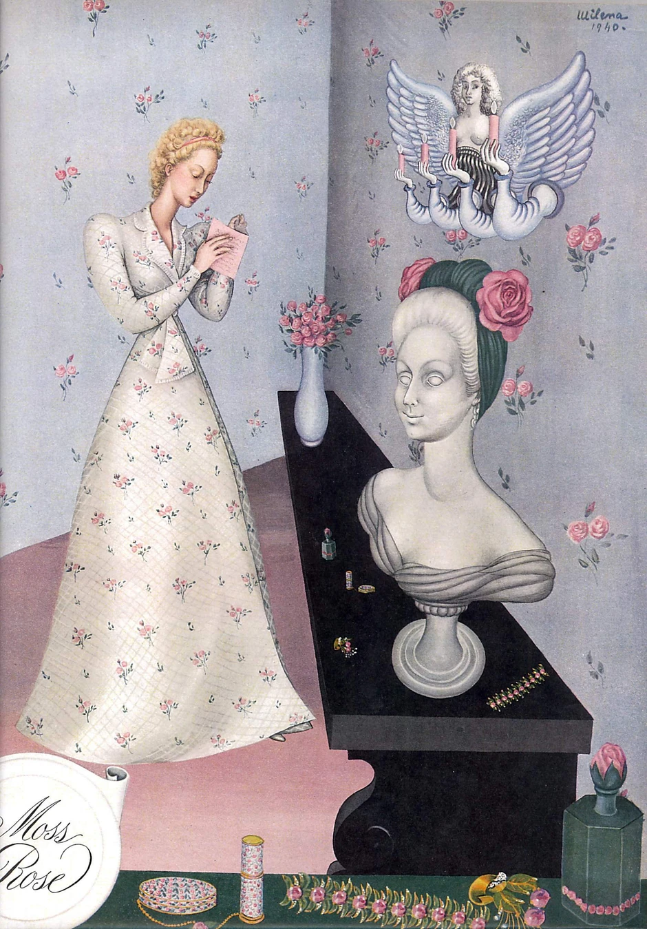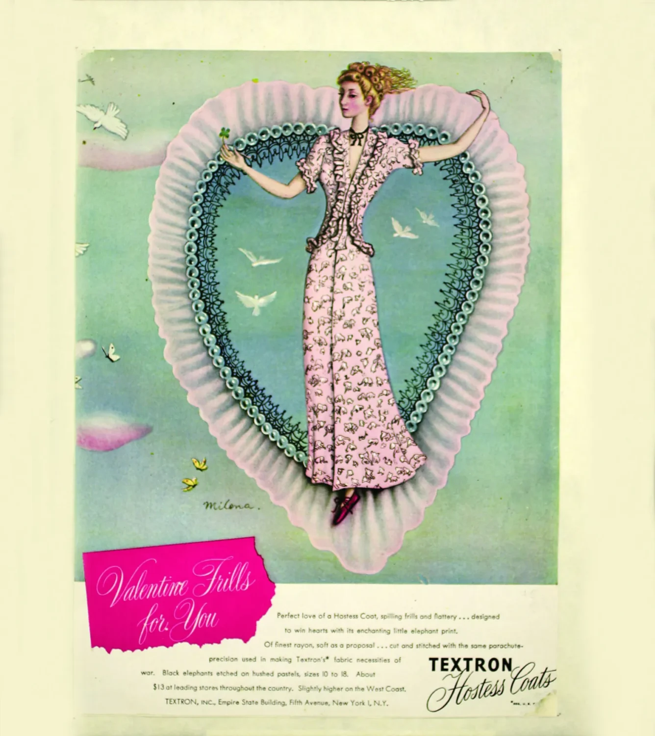 Her move to New York in the late 1930s opened a sustained dialogue with the fashion press. She collaborated as an illustrator with leading magazines such as Harper’s Bazaar and Vogue, translating her painterly universe into editorial imagery. In these works, fashion appears as an extension of her dreamlike imagery, reinforcing a vision in which clothing functions as another symbolic surface within her surreal imagination.