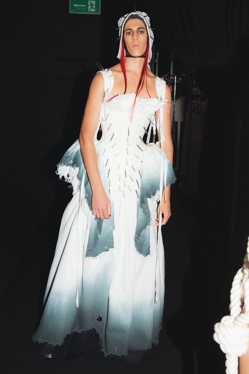 At a time when hate speech resurfaces with new faces, ‘In Nomine Heretica’ stands as a body, a gesture and a voice. A collective incantation calling for a future where difference is not persecuted but celebrated. We talked with designer Marc Aleixandri about turning wounds into memory, fashion into resistance, and the power of creating from the periphery. Our photographer, Ángela Ibáñez, takes us behind the scenes of the runway show.