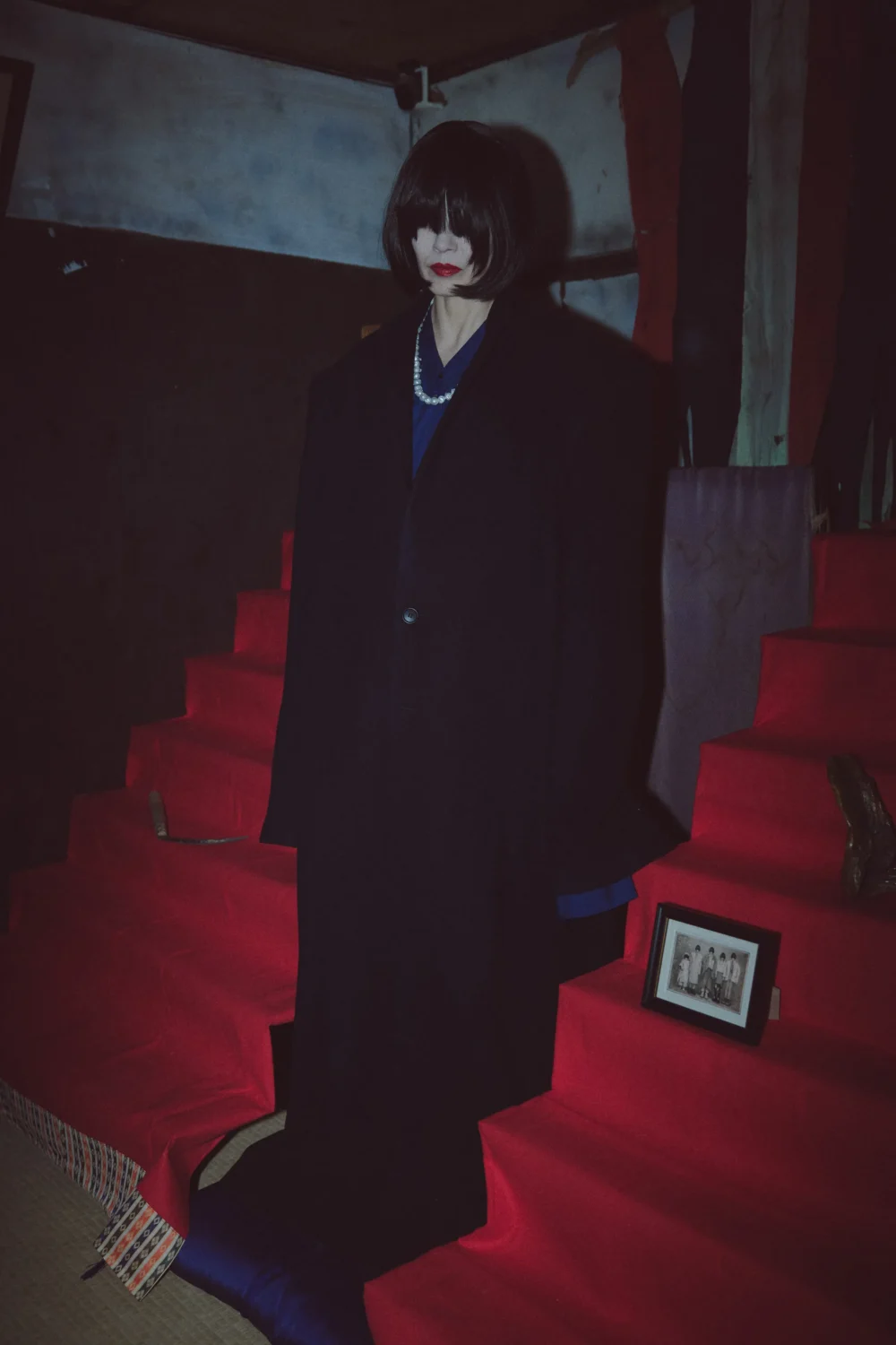 Set inside a 90-year-old Japanese house reimagined as a haunted structure, the presentation unfolds across ten dimly lit rooms. Each one holds a fragment: a figure, a gesture, a suspended scene. The audience does not sit and observe but moves, hesitates, reacts. Fear becomes physical, almost tactile, guiding the rhythm of the experience. What emerges is not a sequence of looks but a succession of sensations.