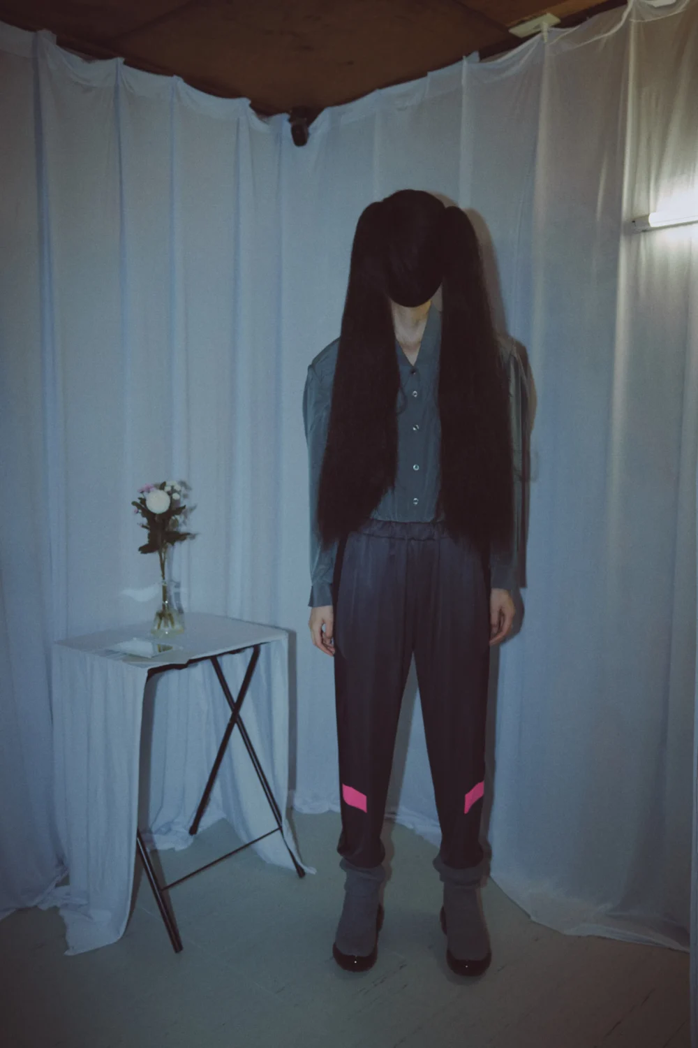 The idea of the forgotten lingers throughout, shaping both space and garment. Memory appears unstable, fragmented, as if the collection were built from what remains after something has already disappeared. This sense of absence translates into clothing that feels slightly displaced, familiar yet altered.