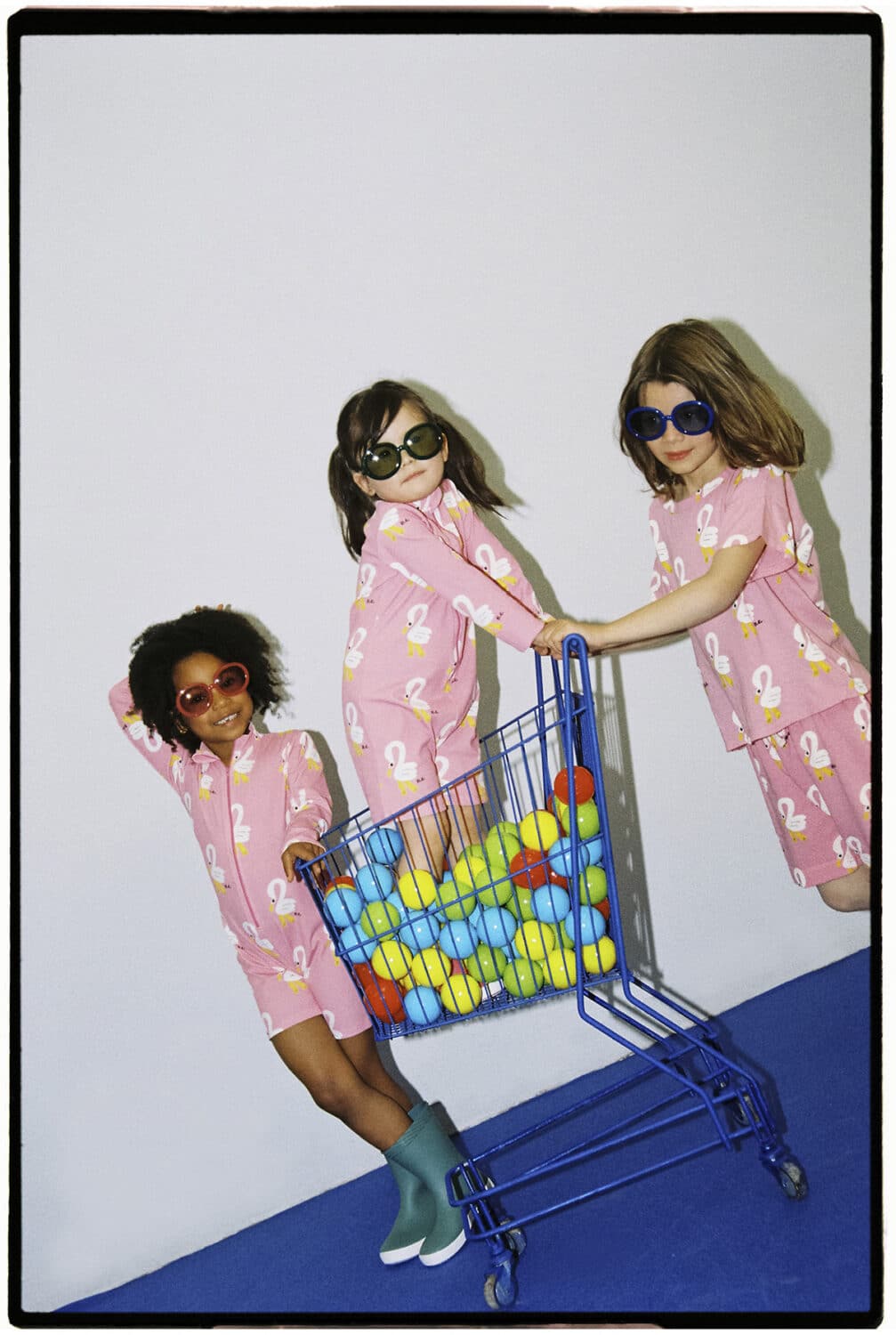 Cesc, Leia y Alaisha llevan prendas de BOBO CHOSES y gafas de sol de THE ANIMALS OBSERVATORY.