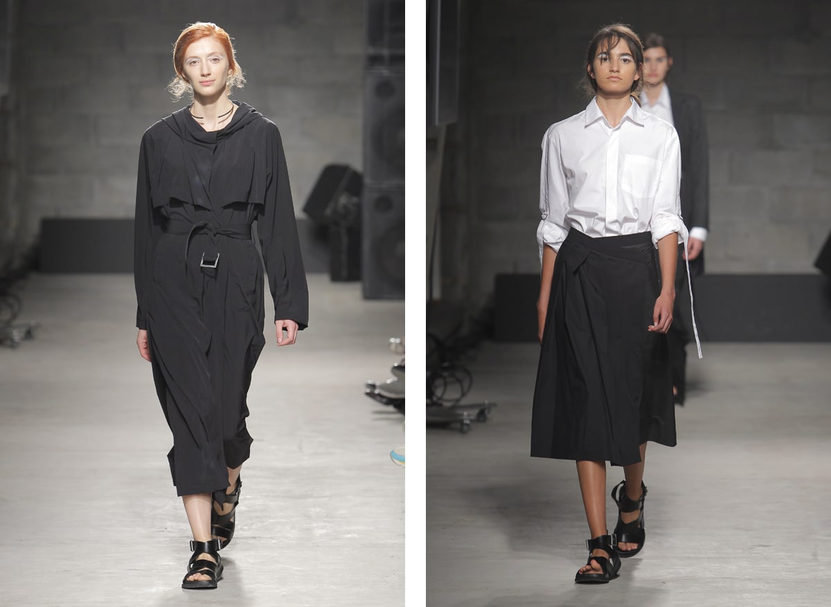 K L A R observa aquello que puede parecer insignificante, para otorgarle una nueva dimensión. De la misma manera, este colectivo multidisciplinar, absorbe influencias que llegan allende los mares y recoge de un plumazo algunas de las tendencias más alternativas de la temporada: el ya asumido hombro al descubierto al estilo Balenciaga de Demna Gvasalia, las mangas extralargas de Jaquemus, J.W.Anderson o Hood by Air, así como los «aros conceptuales» que también hemos visto en las pasarelas de Alexander Wang, Paul Smith o Marques Almeida.