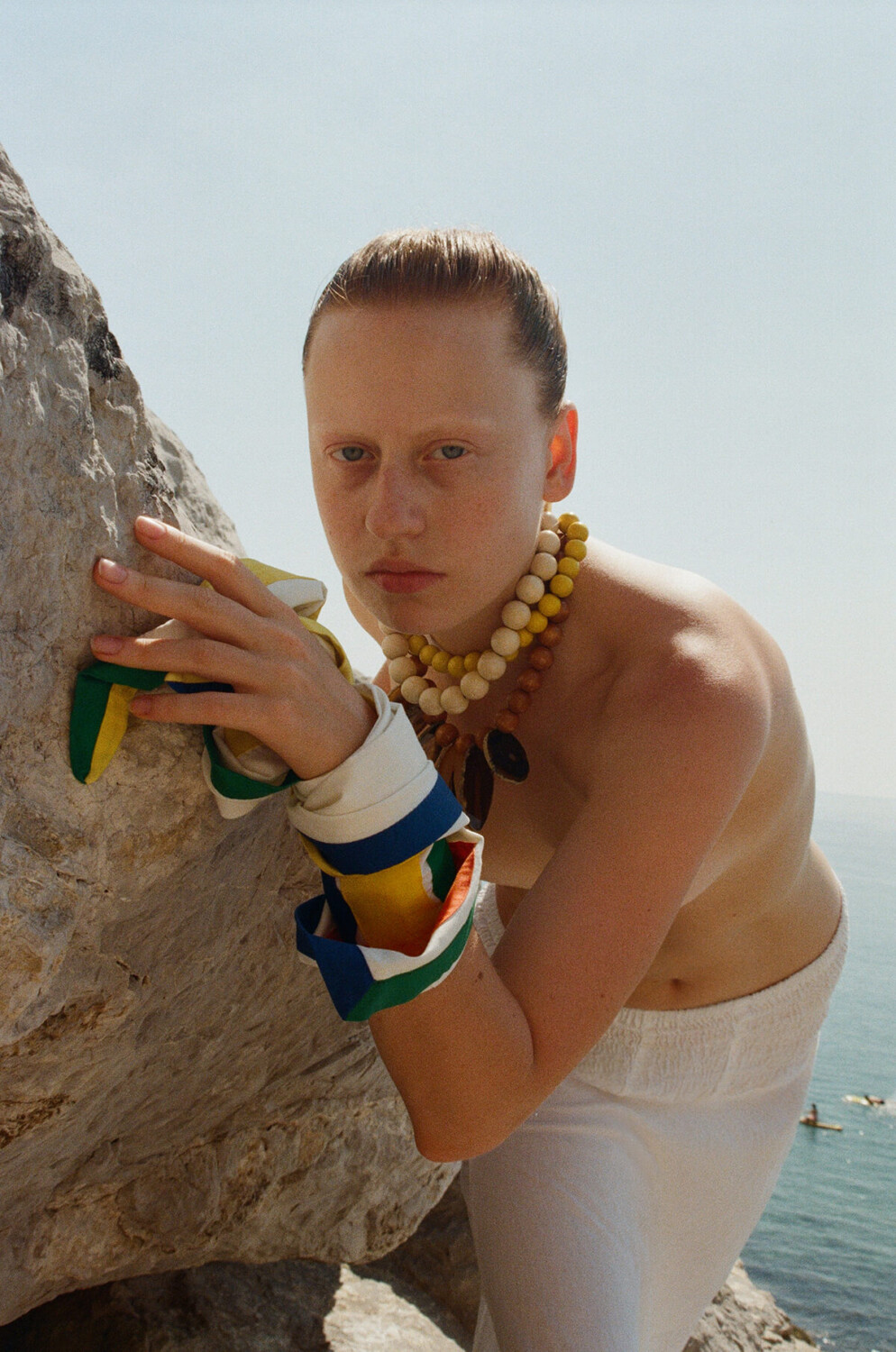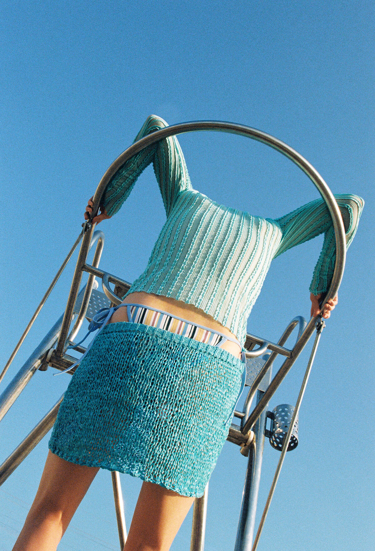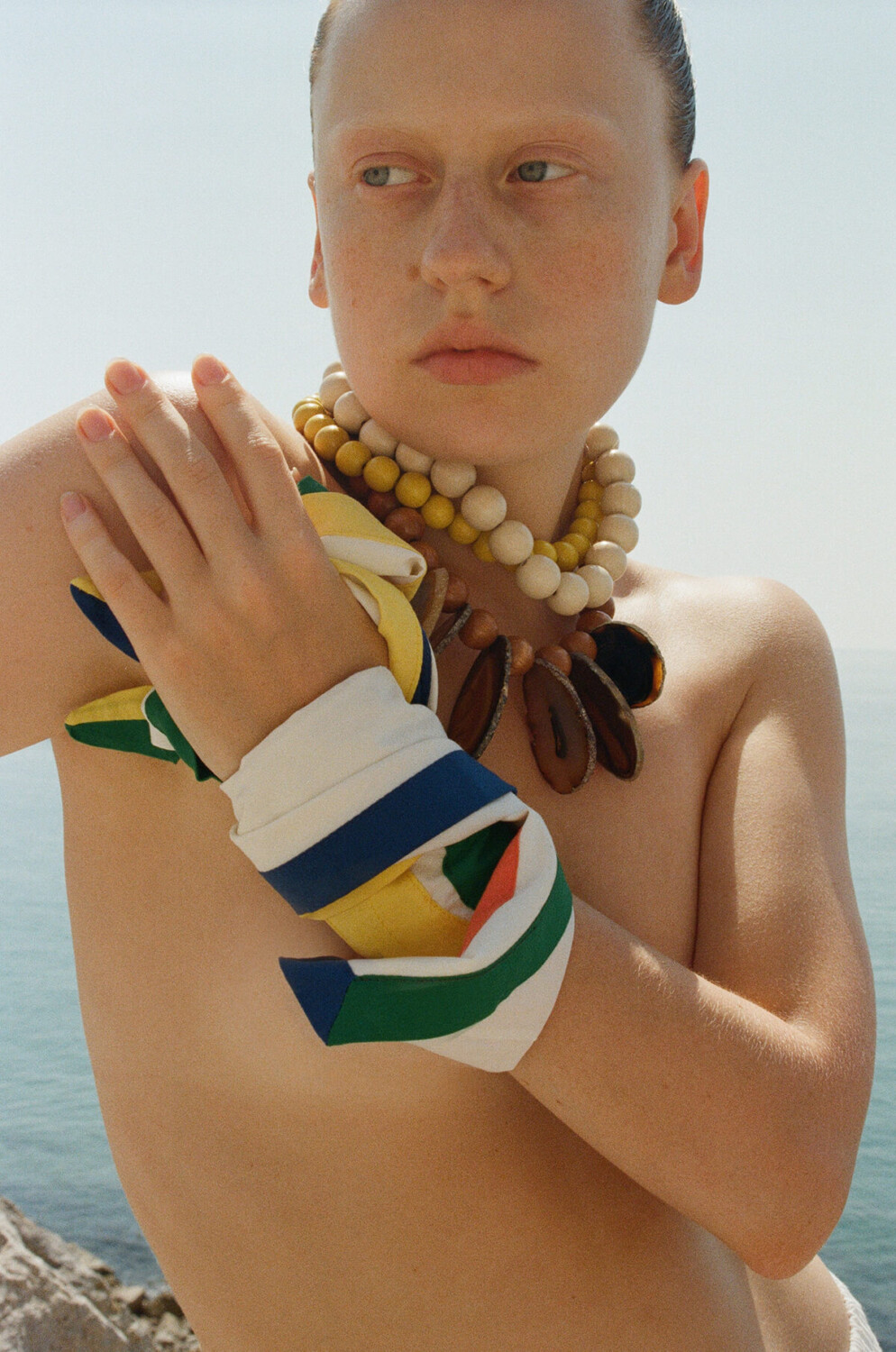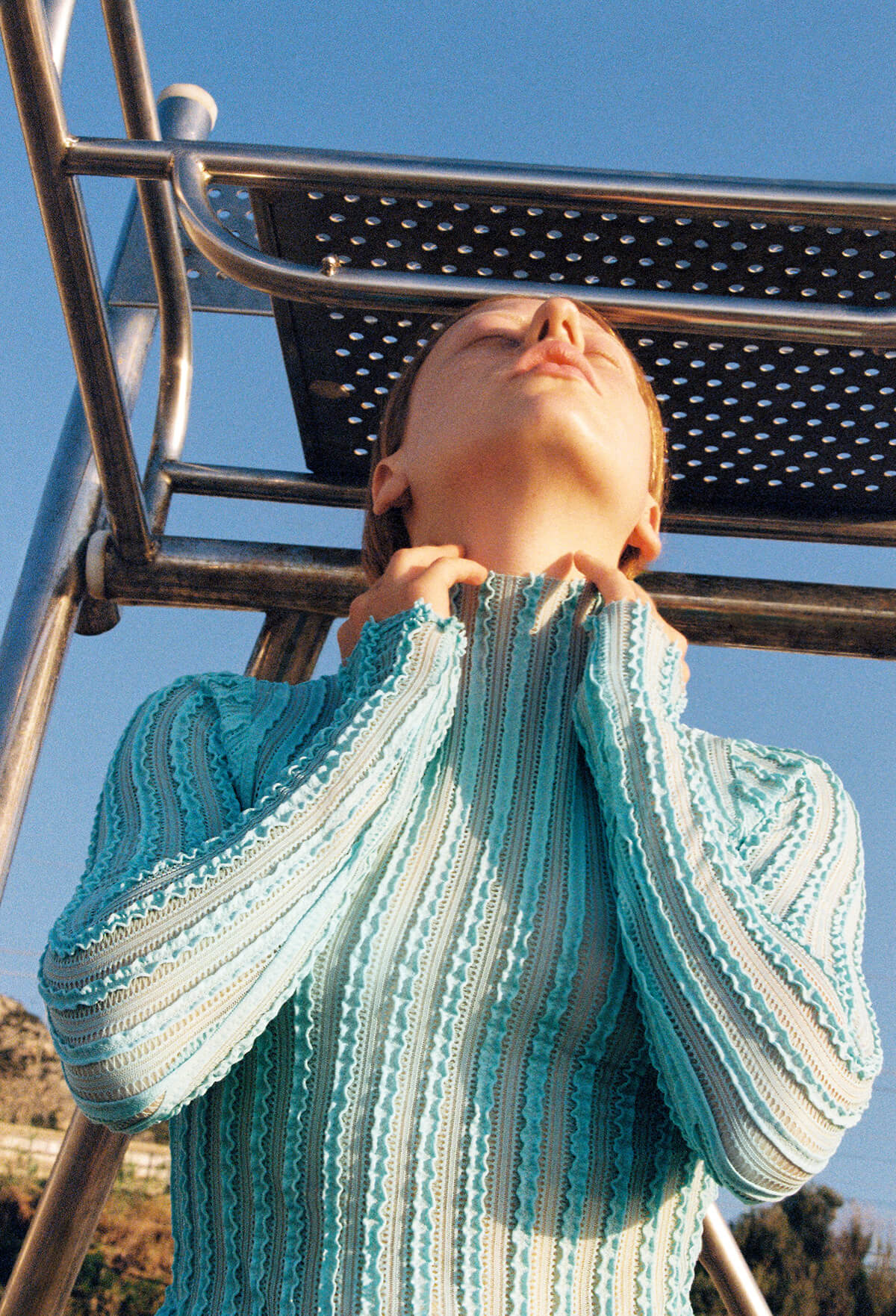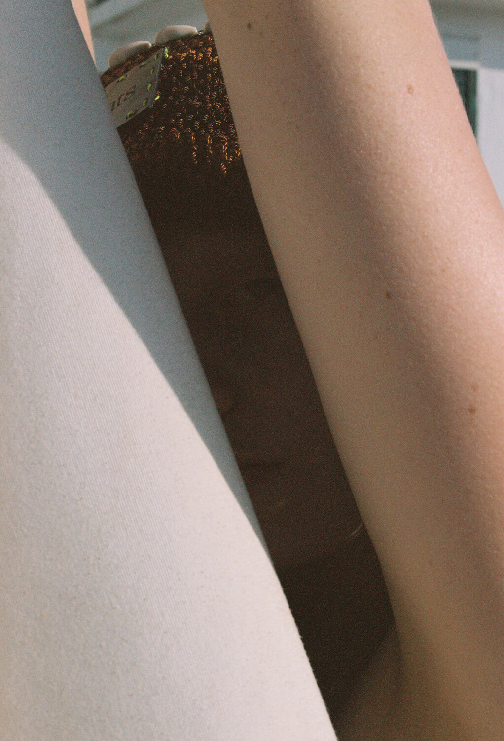 This editorial is an ode to longing not as absence, but as a state of becoming. It unfolds under the Barcelona sun, where saltwater clings to skin and light lingers on the edges of the body. Each frame holds the quiet tension of departure and arrival, of dissolving into what was and opening to what might be.