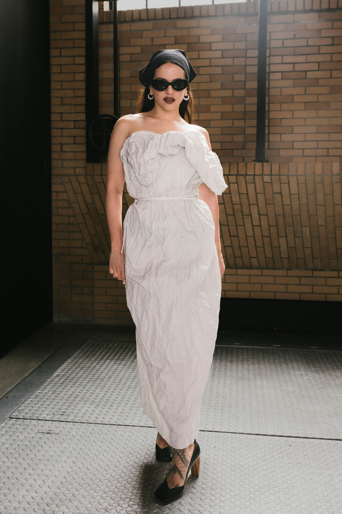 Rosalía wearing Julie Kegels SS26 for PFW show. October 2025
