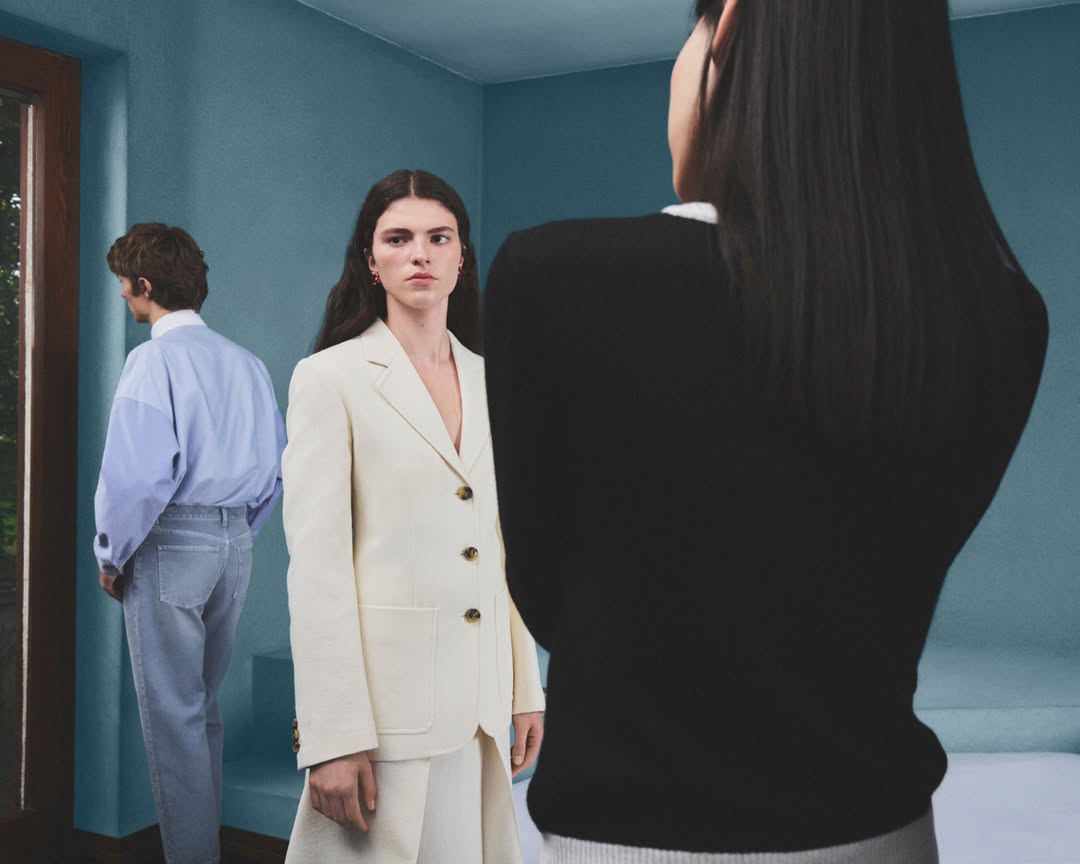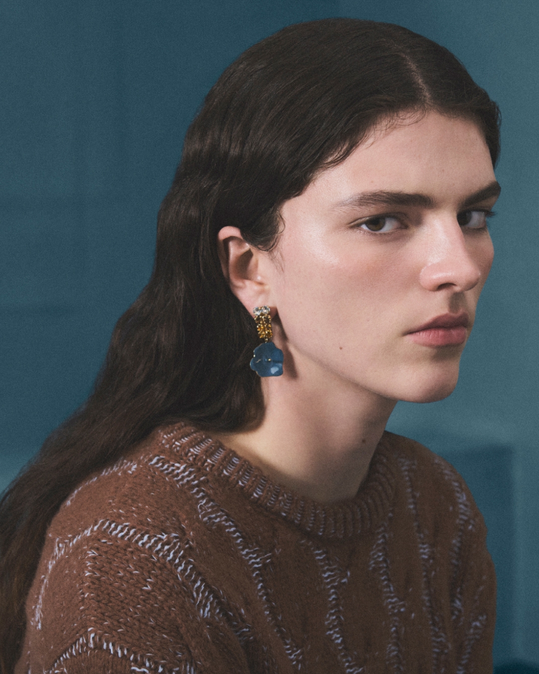 Color and texture reinforce this inward tone. Muted shades sit alongside subtle chromatic accents, shaping a wardrobe that feels personal rather than declarative. Prints and surfaces appear deliberate yet instinctive, echoing the brand’s long standing interest in tactility, emotion and human irregularity. Accessories follow the same logic, conceived as part of the daily act of dressing rather than as statements in themselves.