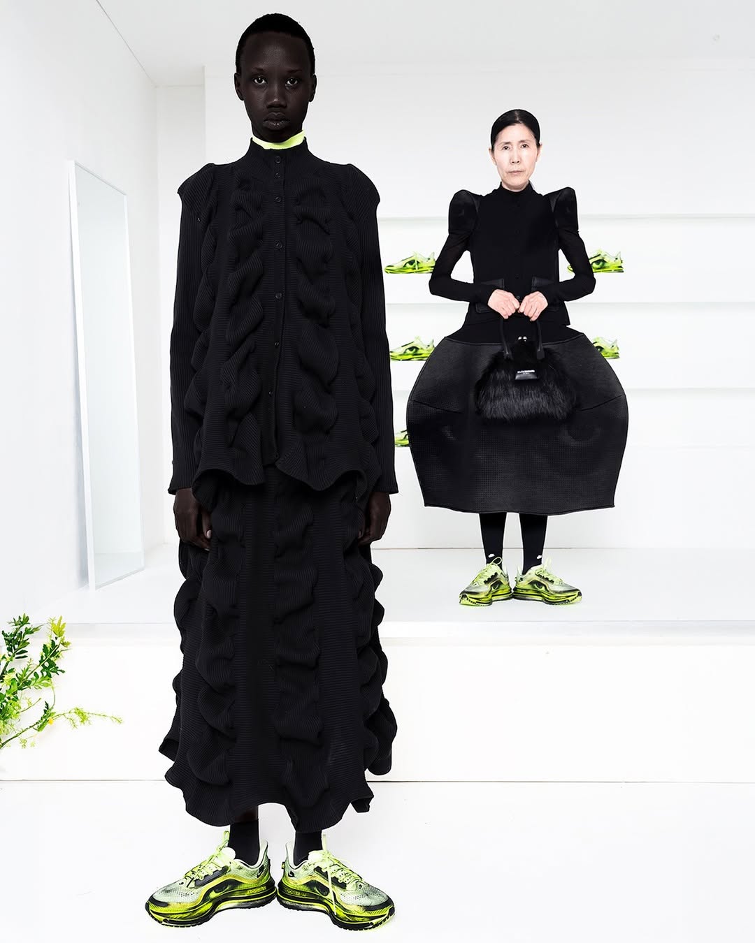 Positioned within Nike’s ongoing dialogue with fashion designers, the collaboration reflects a growing interest in forms that challenge conventional athletic aesthetics while remaining grounded in technical innovation. The Vomero Premium retains its performance DNA, yet its visual language opens it to a different kind of audience, one attuned to experimentation and material expression.