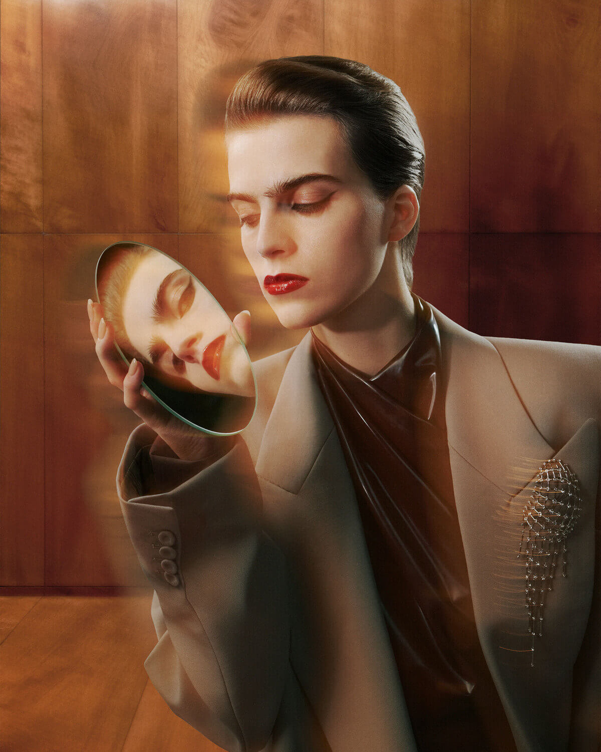 The Pre-Collection SS26 proposes a living wardrobe built around new archetypal pieces that translate house codes through movement, fluidity and form. Sculpted tailoring, satin and jersey define silhouettes marked by strong shoulders and hourglass waists reinforcing Mugler’s architectural legacy while setting a new direction under Castro Freitas.  Photographed by Reto Schmid and styled by Robbie Spencer, the visuals feature Libby Bennett and explore the idea of identity in motion through shifting personas and quiet transformation.