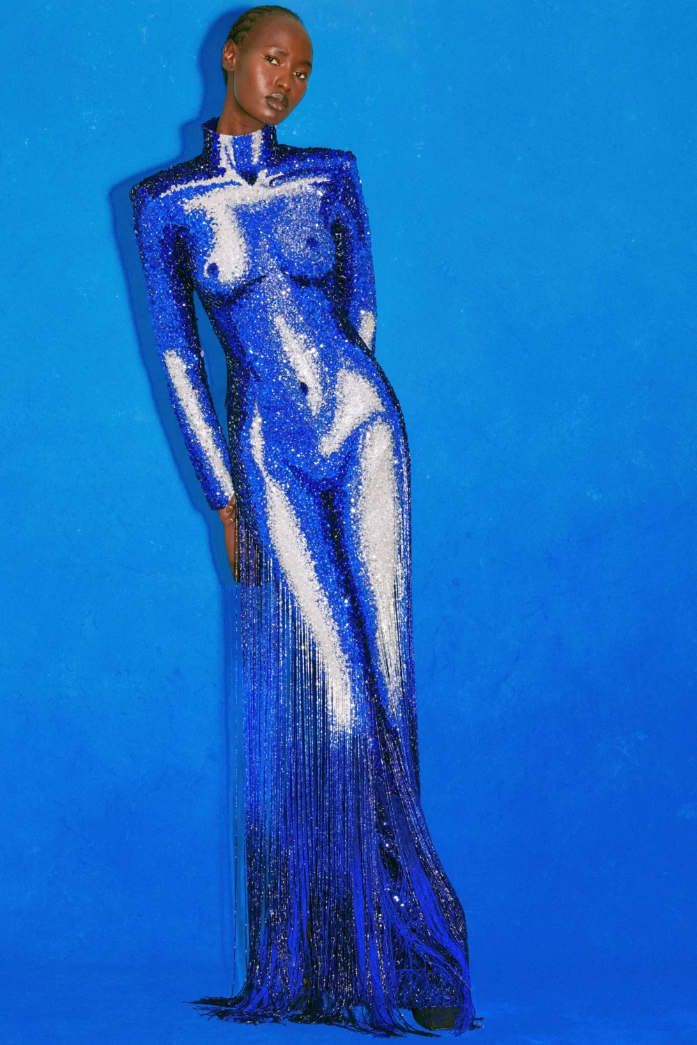 A domestic accident left Rousteing with severe burns, a potential pause that became a catalyst. His Spring/Summer 2022 collection was vulnerability turned into strength. Bandage-like garments, gauze wrapping, metals as emotional prosthetics—he displayed his wounds, transforming them into something aesthetic, emotive, and necessary. Fashion ceased to be a façade; it became confession.