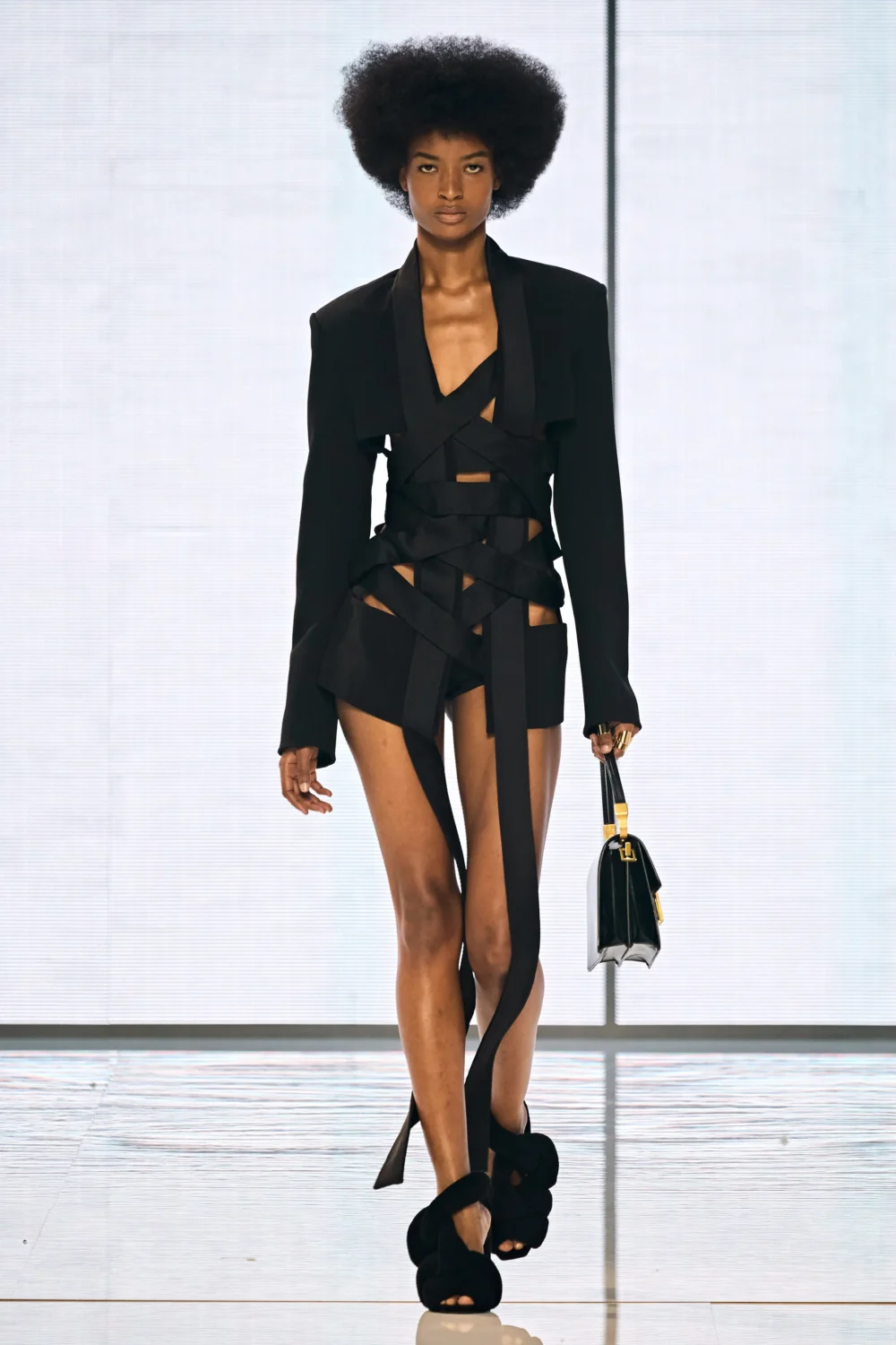 Weeks before the show, over 50 pieces were stolen. In ten days, Rousteing’s team reconstructed the collection for its September 2023 debut. The result was a runway of fragility and resilience: floral dresses, delicate embroidery, a softer palette, a testament to beauty emerging from chaos. Fashion, he reminded, happens as much backstage as on the runway.