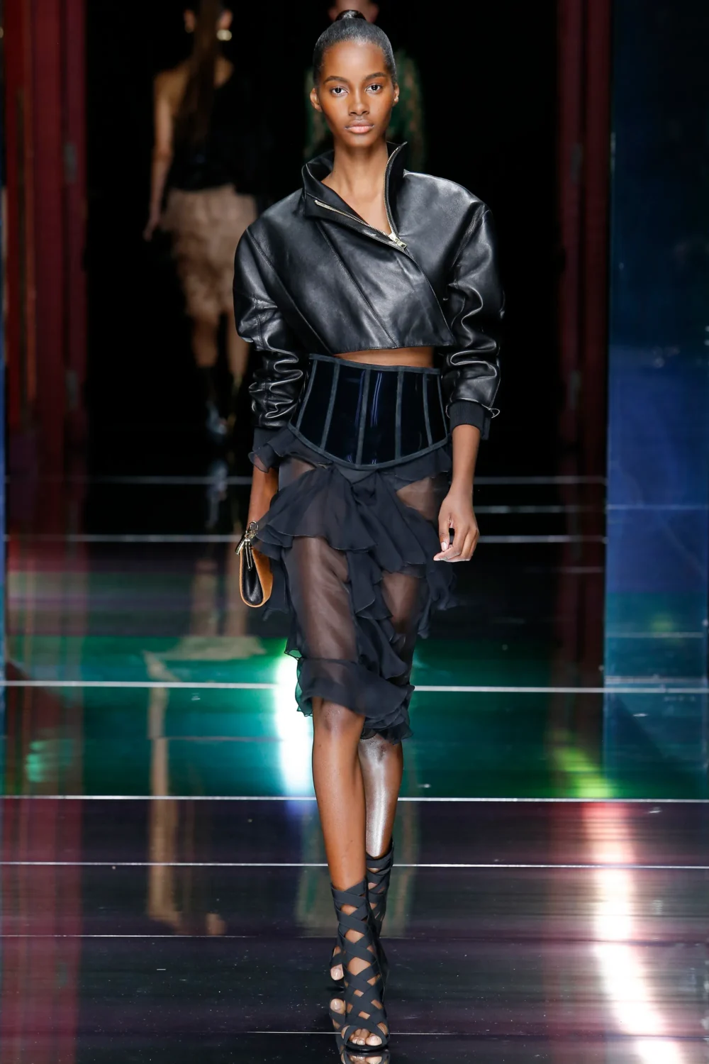 Rousteing elevated aesthetics to sculptural heights: intertwined corsets became exoskeletons, stretched transparencies revealed while protecting, fabrics reflected the urban landscape.