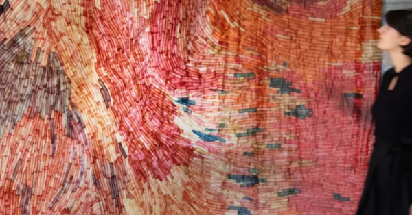 Inspirándose en las selváticos trazos y el exuberante e idealizado verdor de “Woman Walking in an Exotic Forest”, del autodidacta Rousseau, Palomo construye un psicodélico viaje a través de la selva.