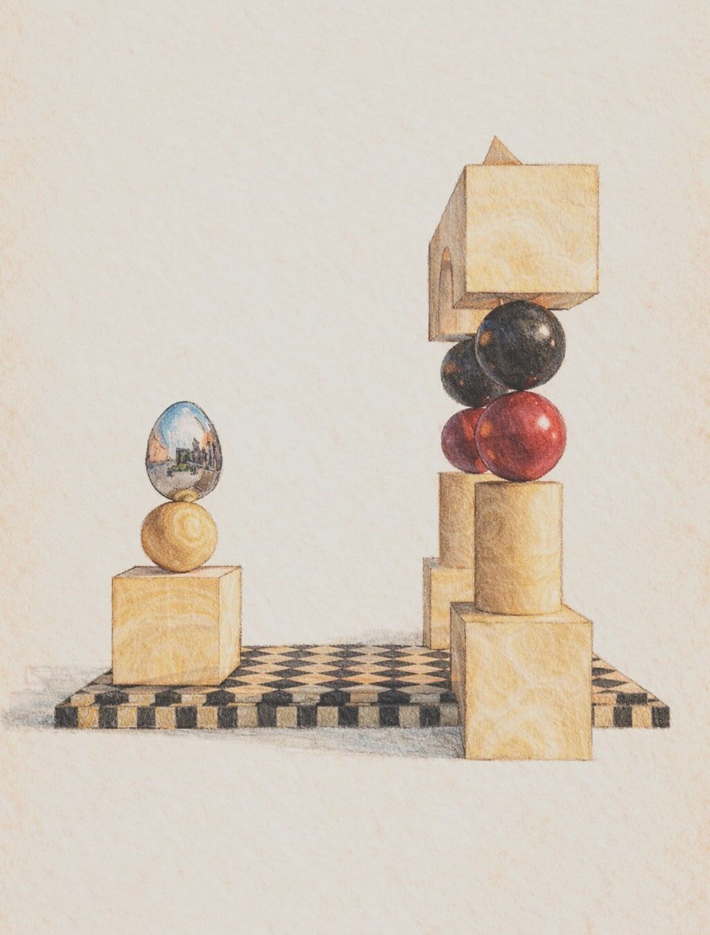 Aligned with the glass pyramid designed by I. M. Pei, the installation sets a measured relationship between inherited material knowledge and modern architectural form. Built from Egyptian heritage stones including yellow alabaster, red Aswan granite and Breccia Fawakhir, the piece leans on each material’s symbolic charge, from interior light and permanence to geological time and transformation.