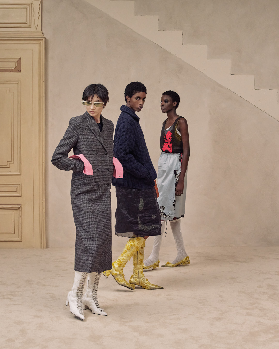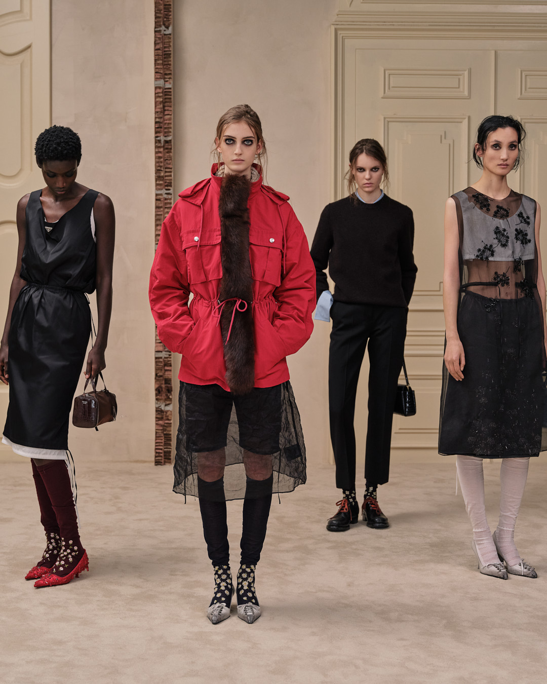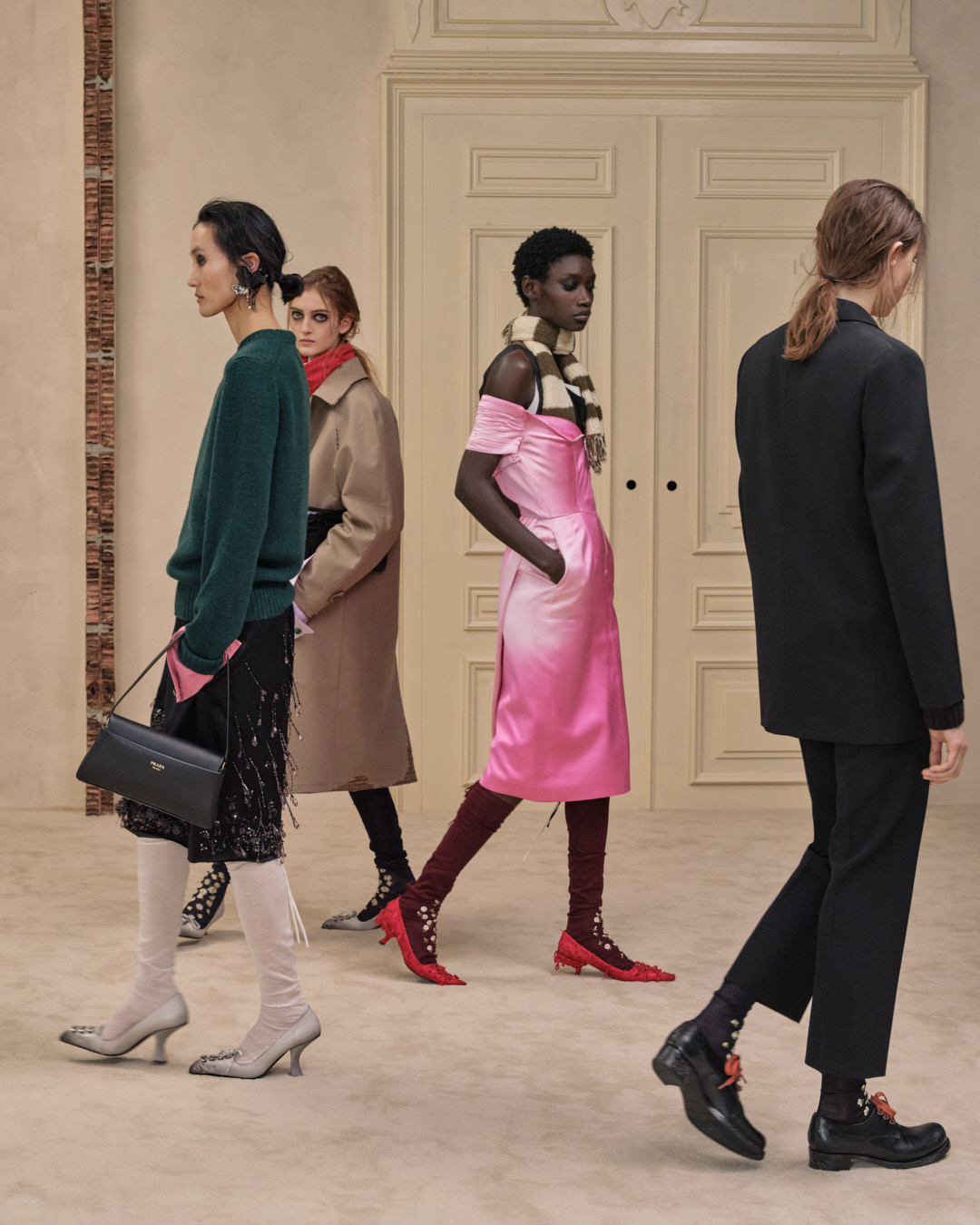 Agency sat at the center of it all. The collection suggested that style grows through combination, through perspective shifts, through the choice to reveal or conceal. Prada’s restraint felt precise and humane, returning imagination to the act of getting dressed.