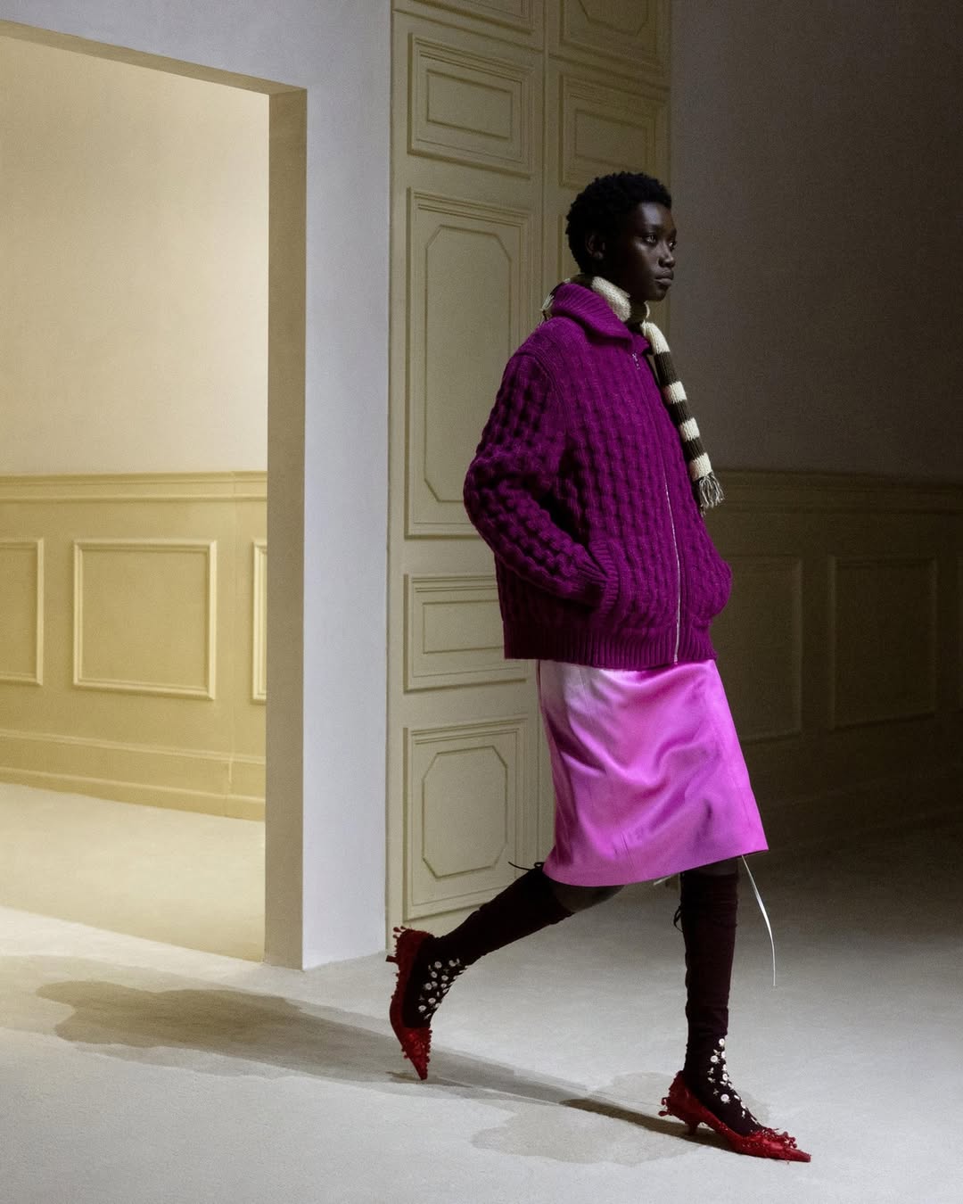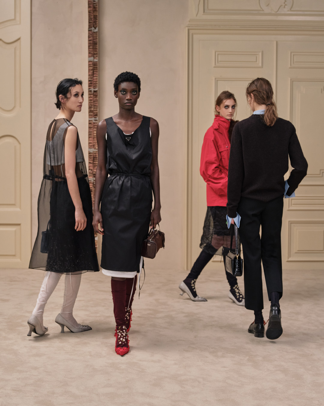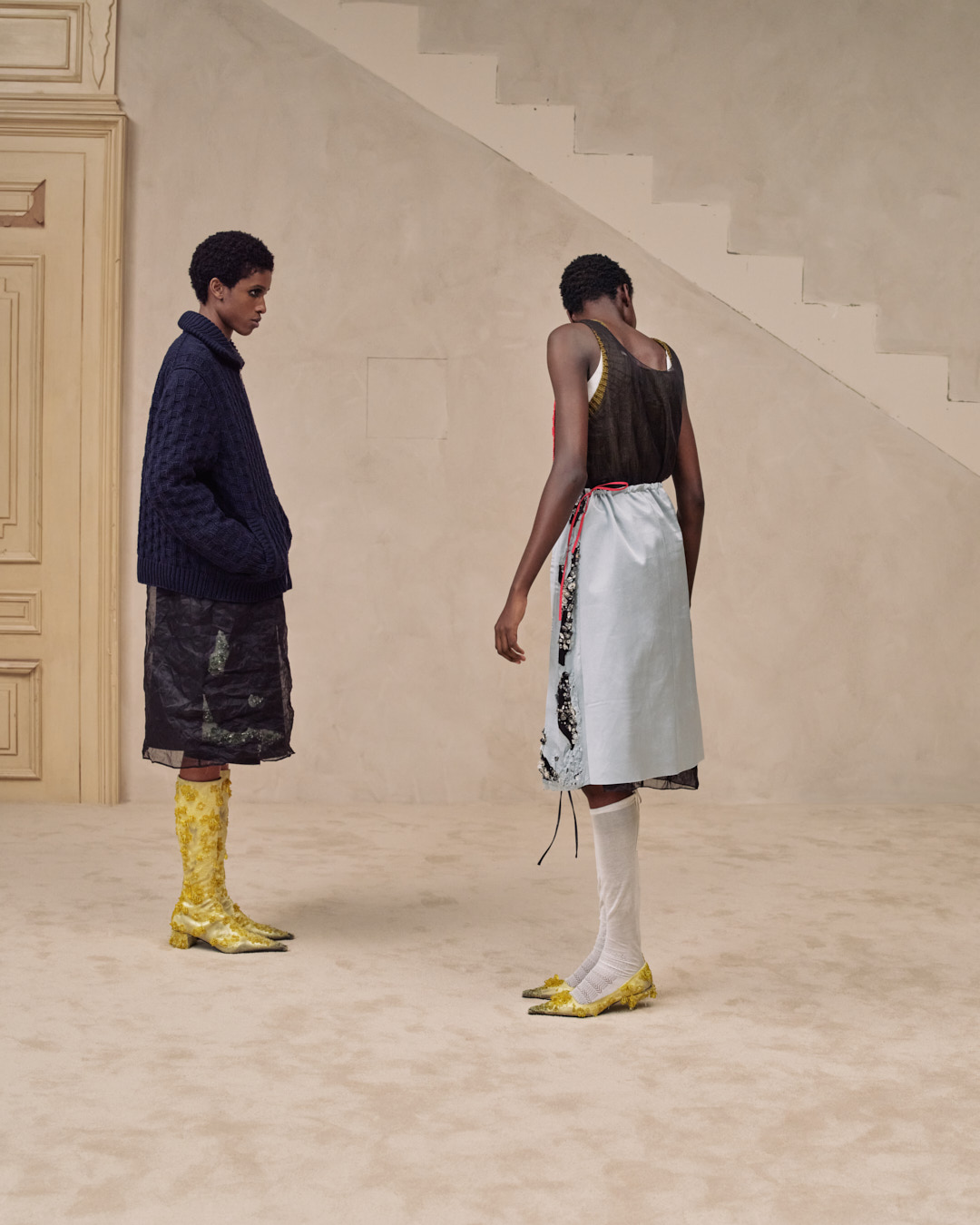 Agency sat at the center of it all. The collection suggested that style grows through combination, through perspective shifts, through the choice to reveal or conceal. Prada’s restraint felt precise and humane, returning imagination to the act of getting dressed.