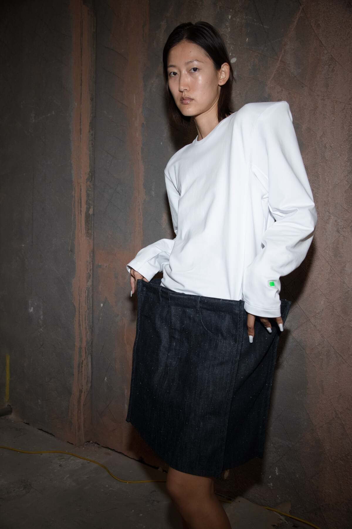 The collection draws heavily on your signature denim experimentation and also features upcycled and certified fabrics. How do you balance innovation in form with your sustainability ethos?