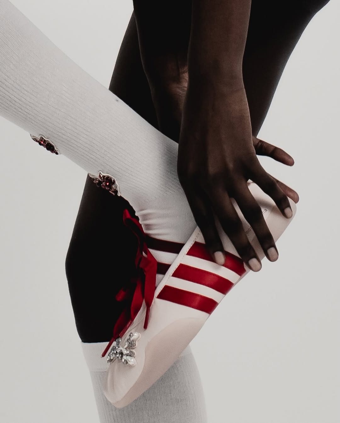 Lace, tulle, and three stripes converge in a collaboration that turns athletic codes into something intimate, tactile, and sharply imagined.