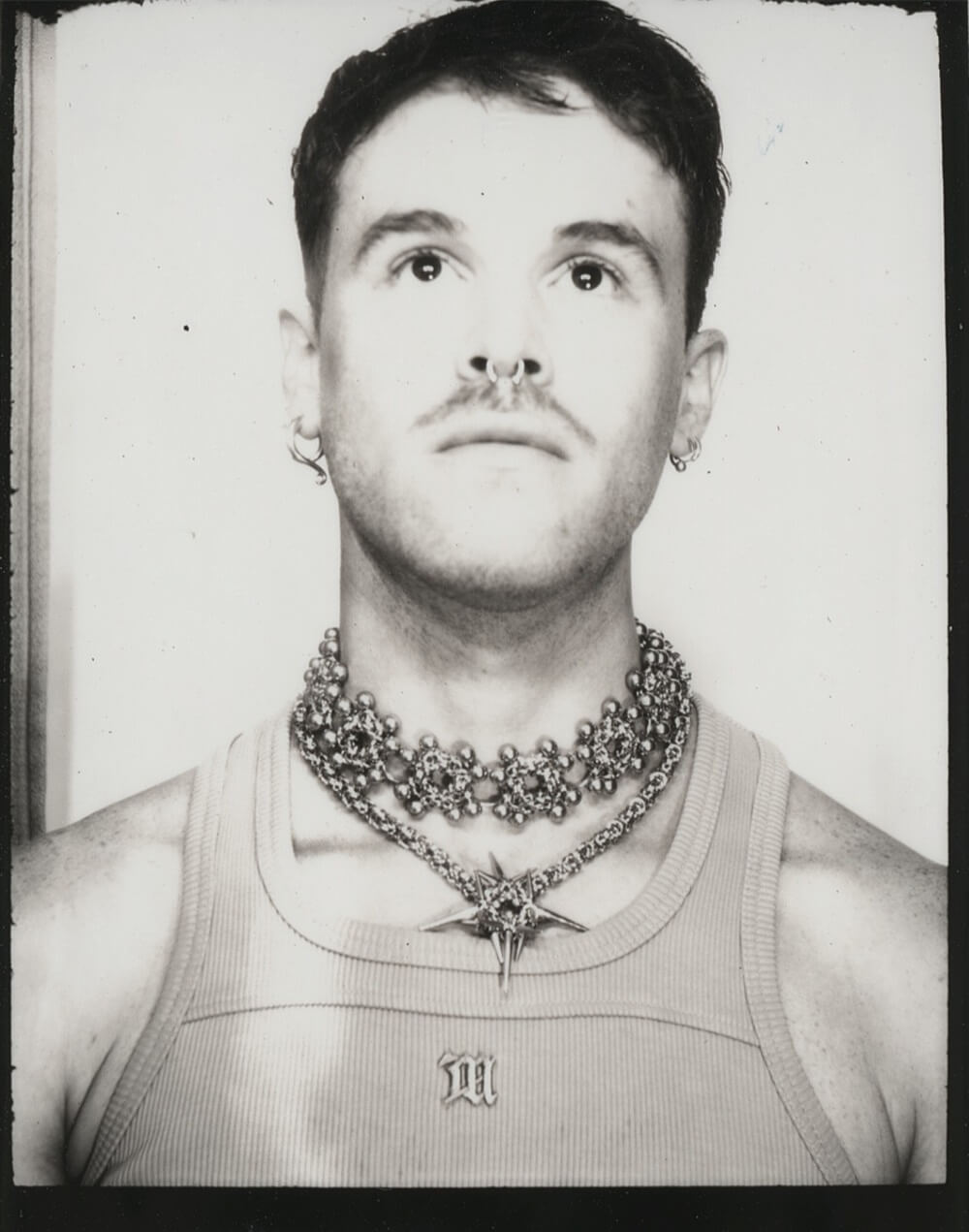 Las piezas tienen un lenguaje frio, algo distantes y que ya comunican al solo verlas, se distinguen los detalles pequeños y la combinación de anillas con piercings en cada collar. por lo tanto lo defino como una identidad segura, calma que es construida con precisión y técnica.