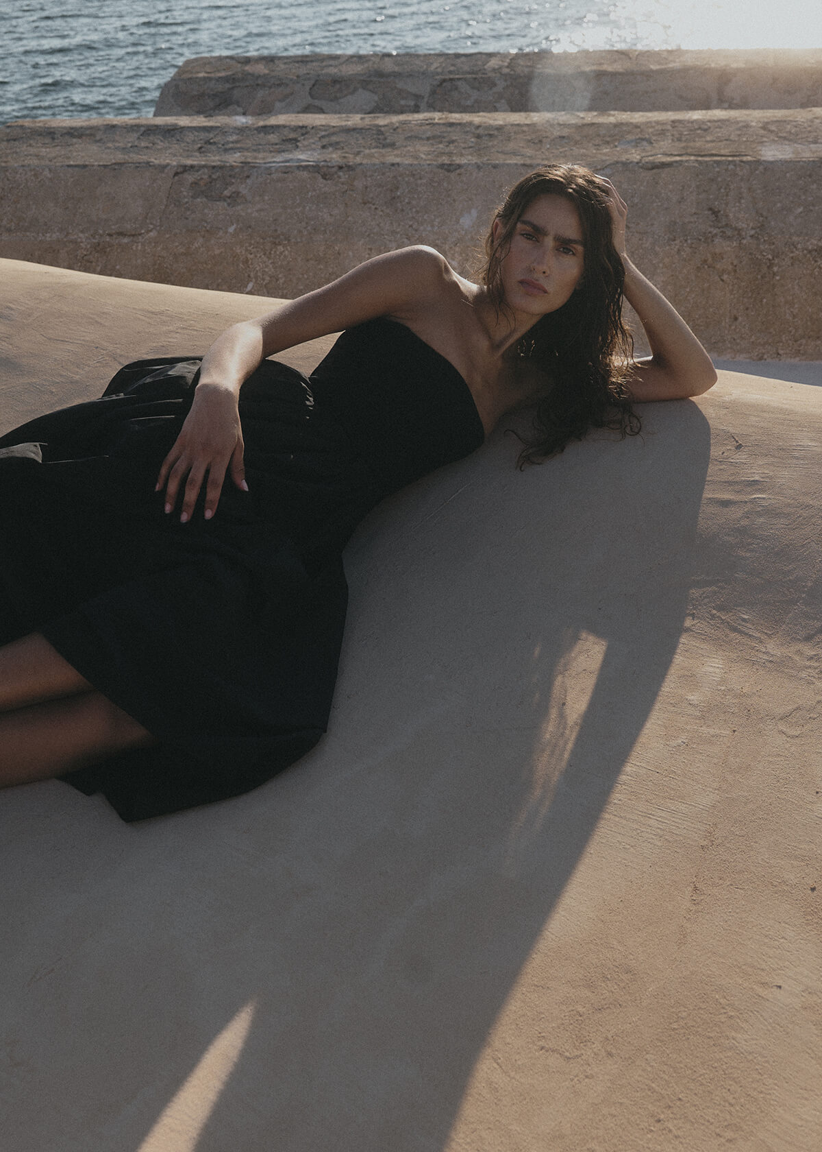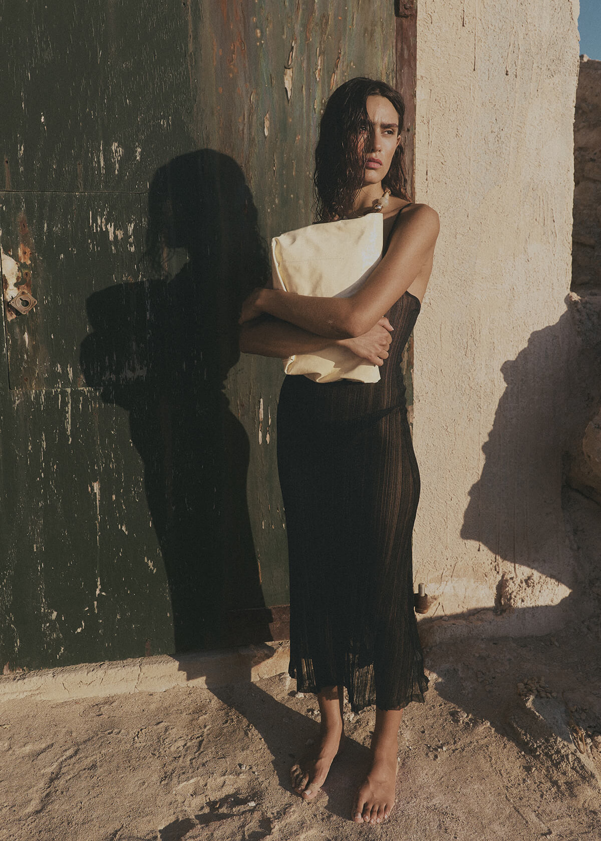 dress WOLFORD, bag and necklace MASSIMO DUTTI
