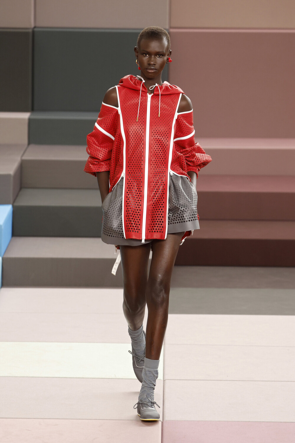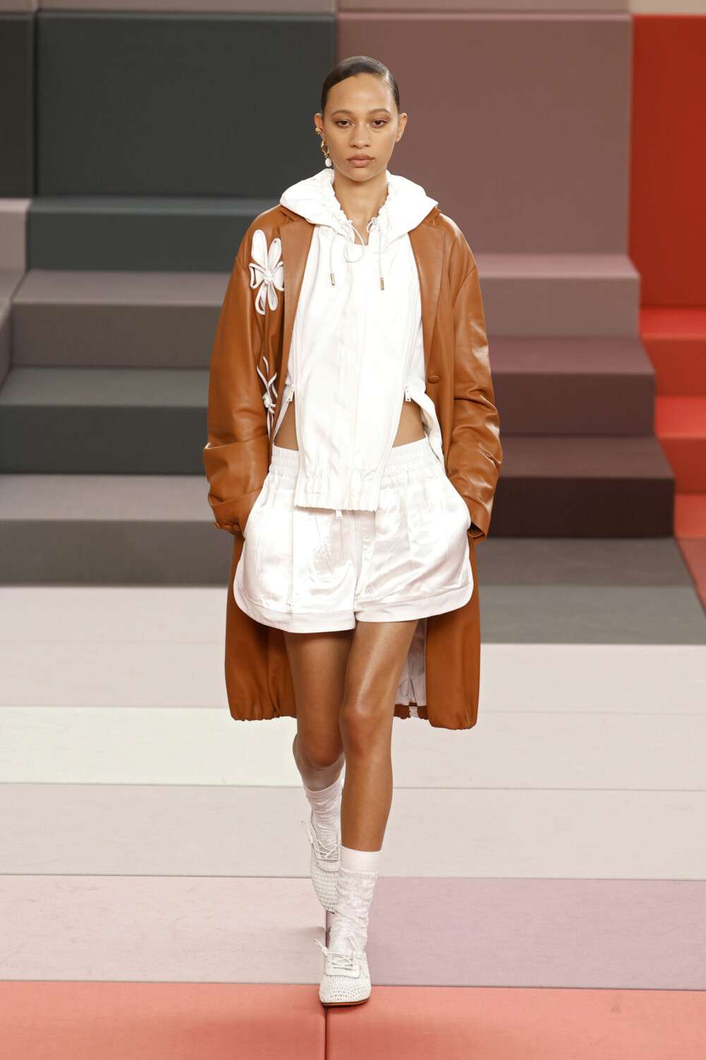 Silvia Fendi transformed the functionality of sportswear into unexpected pieces, perhaps aiming to offer a more optimistic view of the modern (or postmodern) age we live in. On fabric, layered prints conveyed a digital feel, reminiscent of images magnified on a screen. The daisy became the leitmotif, appearing on bags, coats, and skirts, as well as in subtle details: open bags resembling flower petals or delicate lace shirts. A call to that optimism that is just about to bloom.