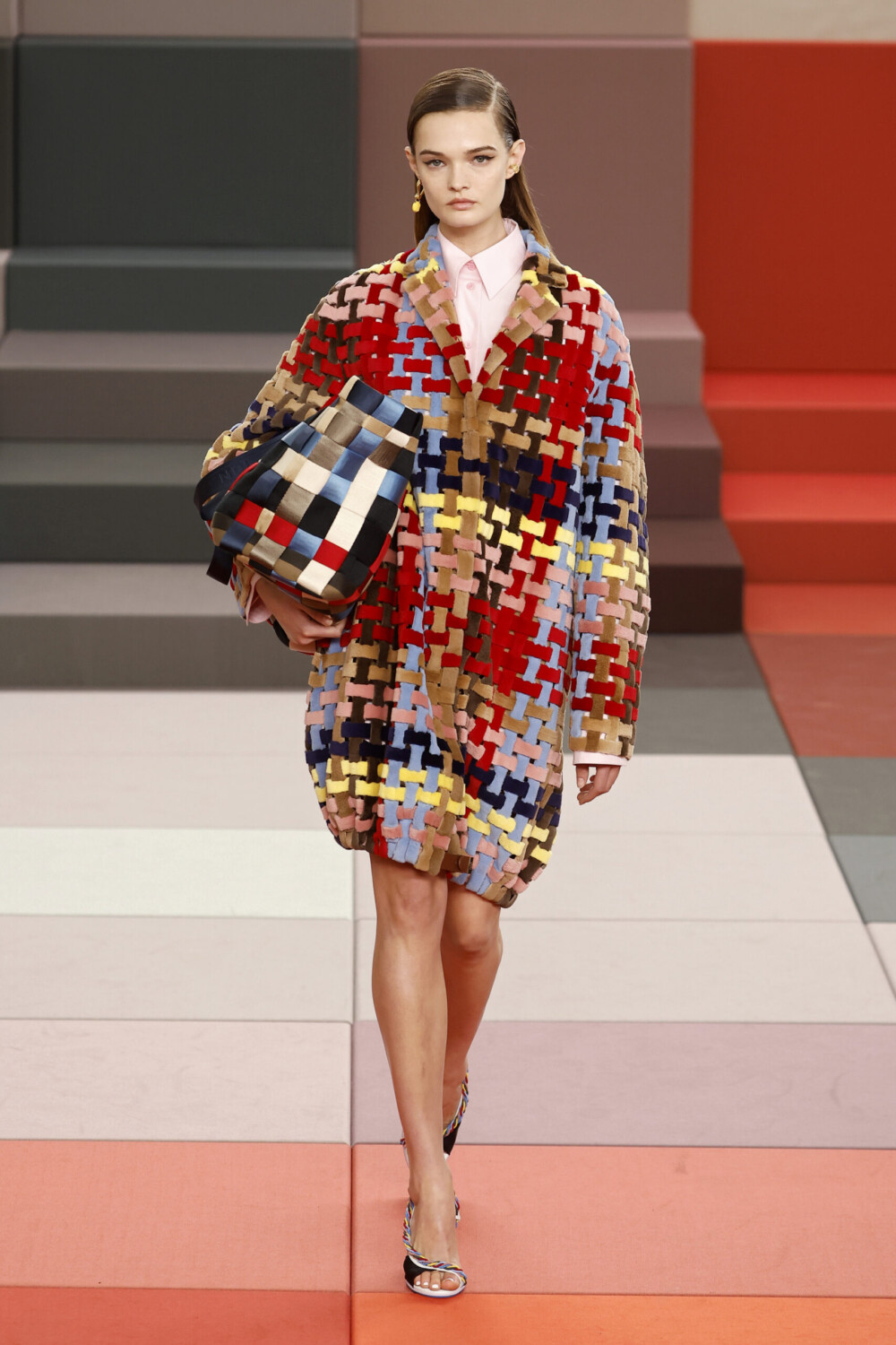 Fendi projected modern-era optimism onto the runway. In a set evoking the pixels of an enlarged image, colors filtered into the garments, building a luminous and joyful proposal.