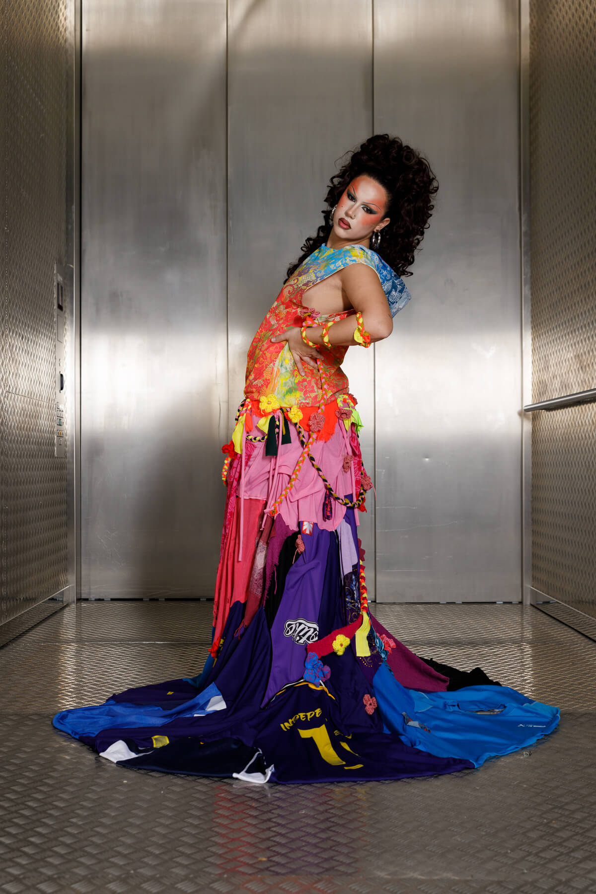 Coral wears «Motion» created by Blén González Costea Llamas, Berke Rizalar, HuanTsun Su, Martina Otero Jeandrevin and Maya Ceplen.