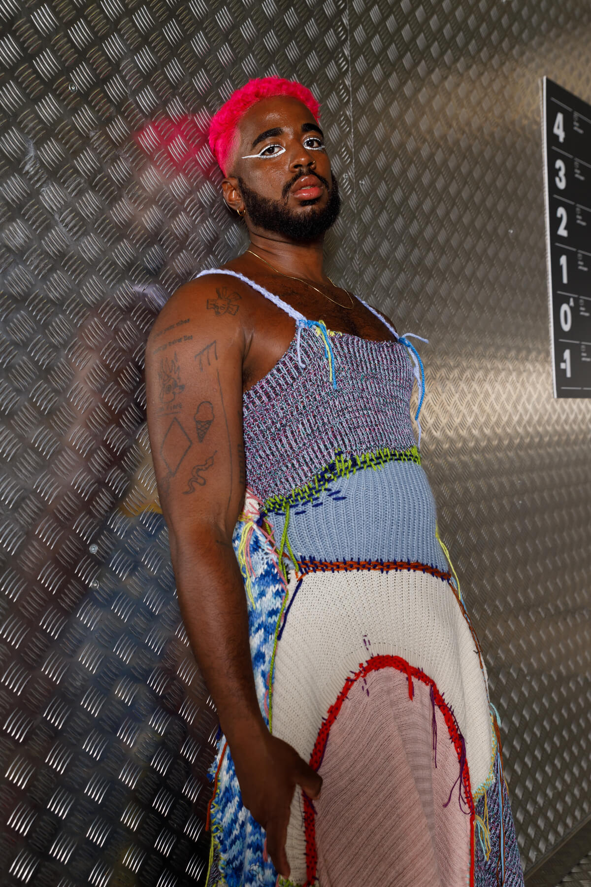 Riri wears «Healed by Yarn» created by Francisca Latapiat Cabrera, Matylda Wlodarczyk, Melanie Cieslinski, Victoria Rusu and Xavier Tejero Azorín.