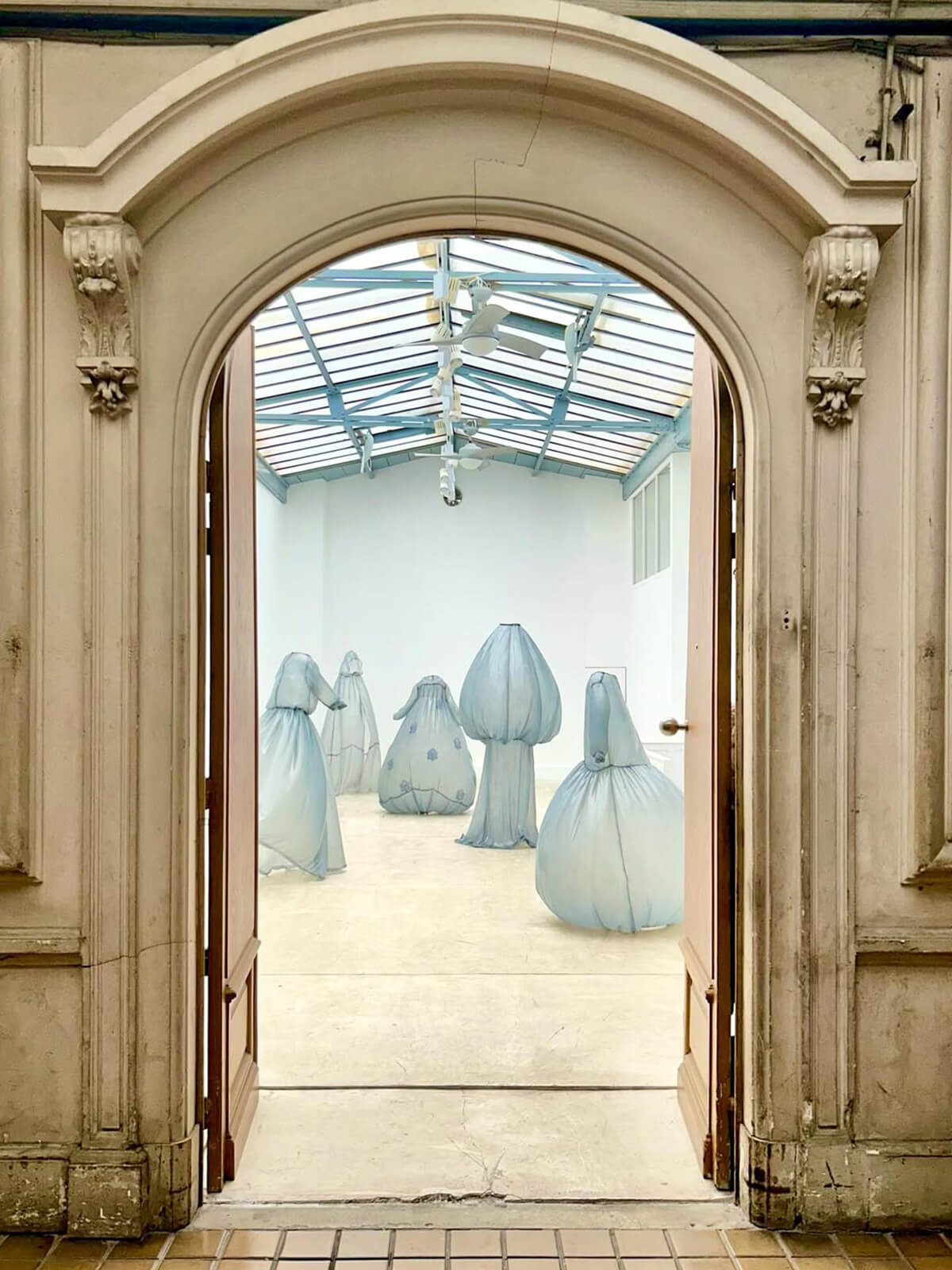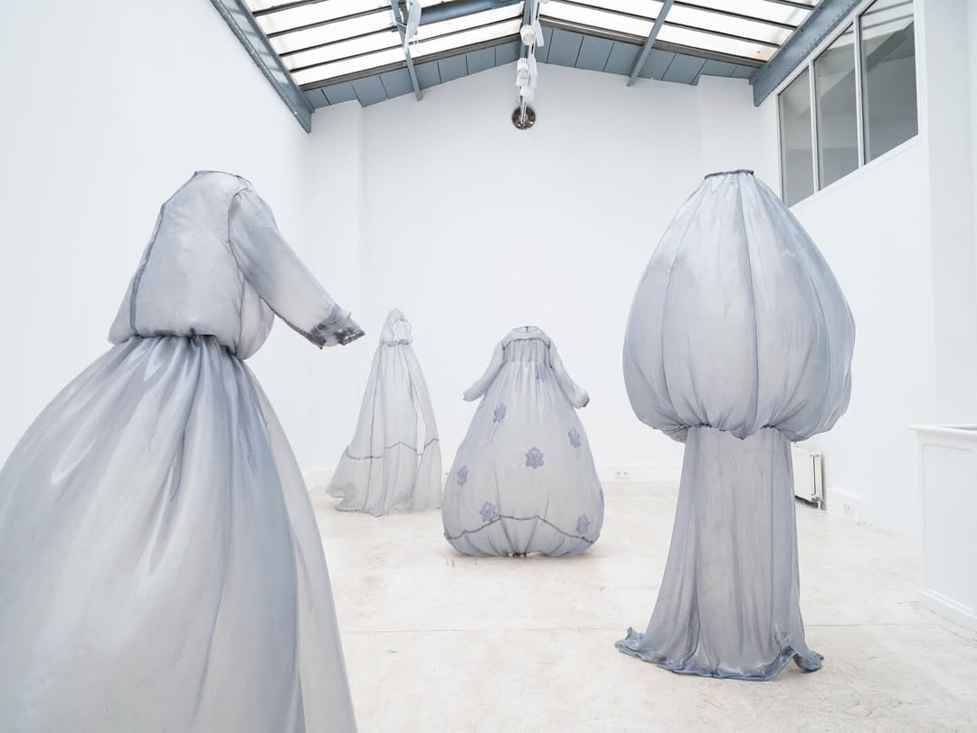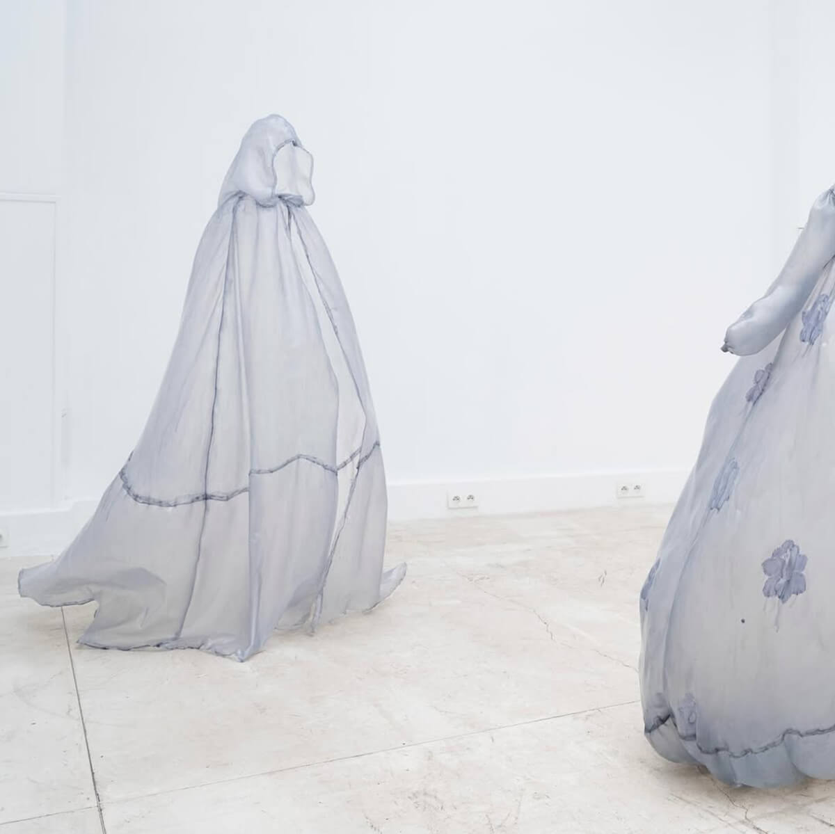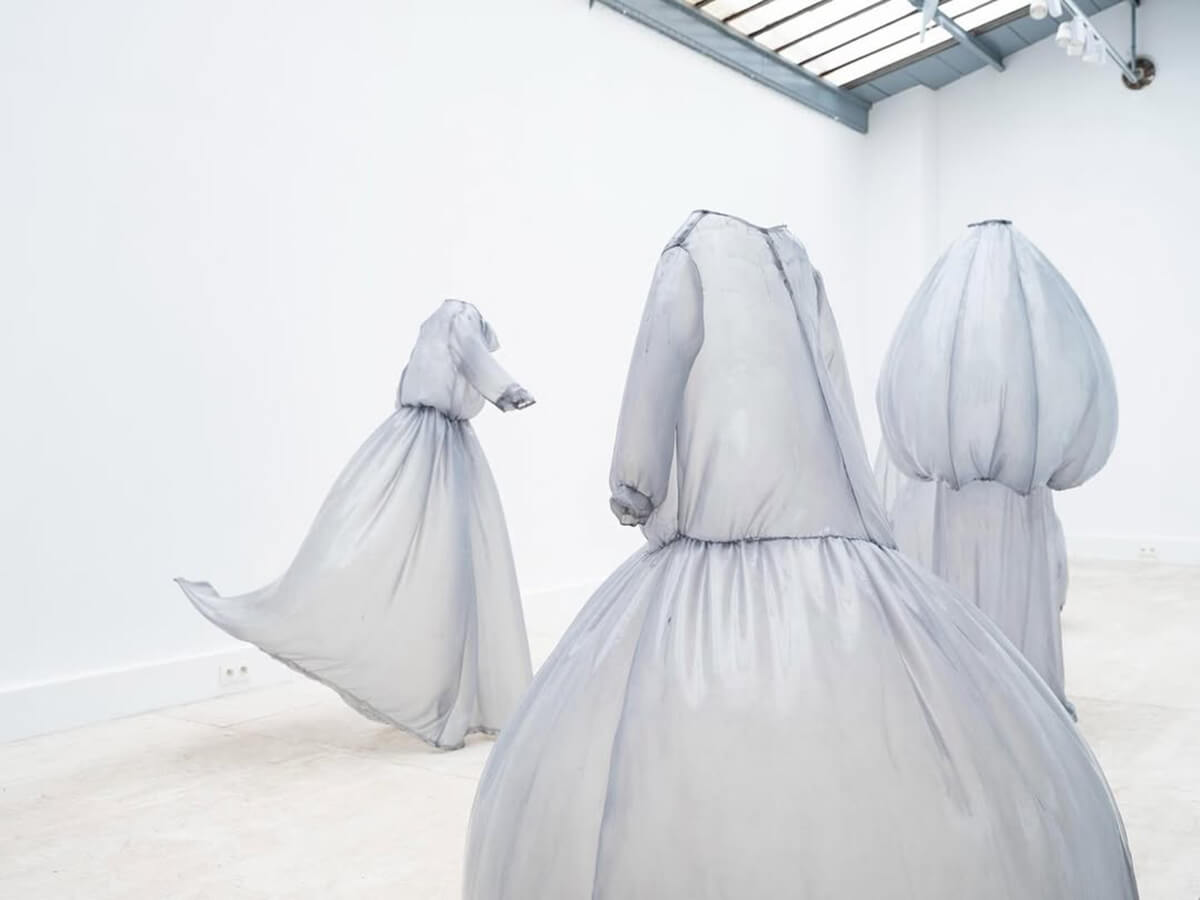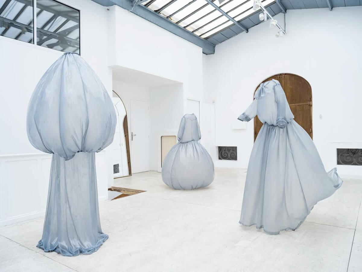 Presented at Europa Gallery, the show deepened Morris’s exploration of material absence. Drawing from Victorian children’s wear, with its shrunken shoulders and constricted waists, these works suggested that memory and emptiness can coexist within the same shape. Developed during his residency in Paris, ‘Tissu Expansé’ replaced the human figure with air, making the void the true protagonist of the sculpture.